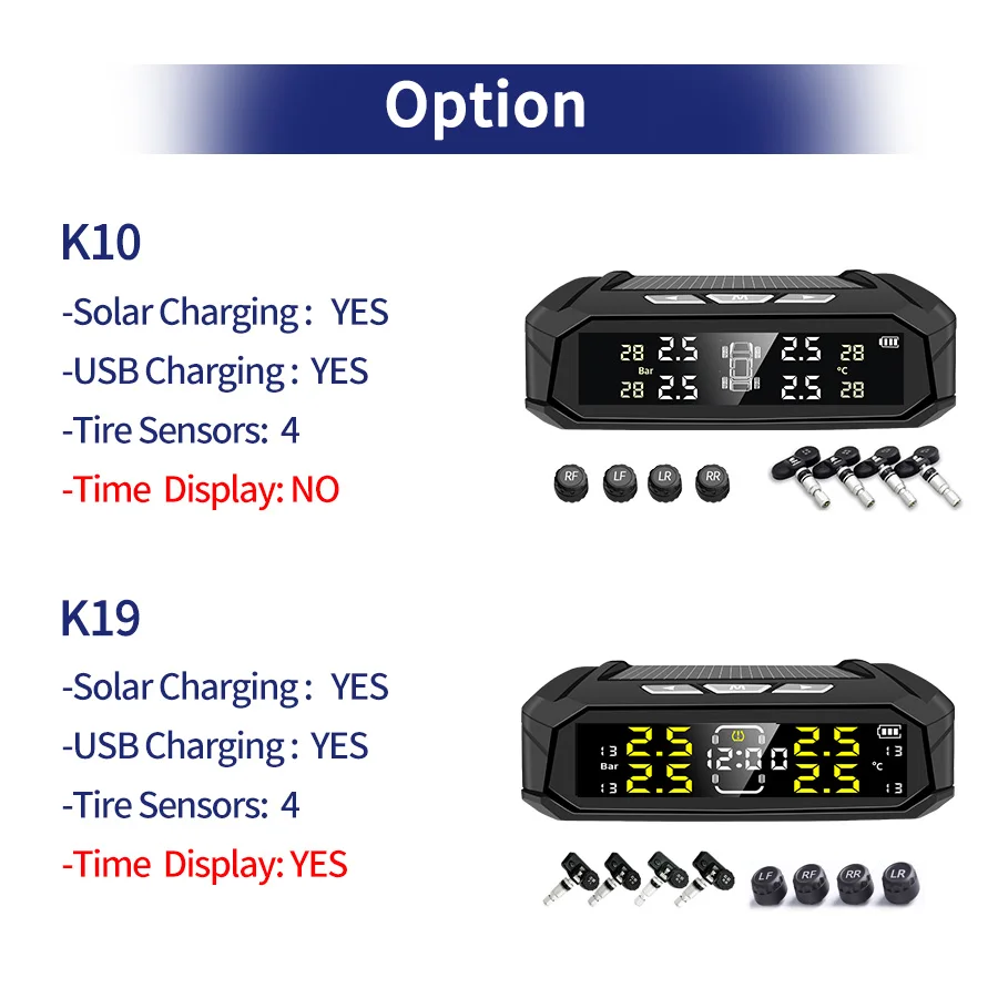 Датчик давления в шинах ACCEO K19, прибор для контроля давления в шинах, на солнечной батарее, с ЖК-экраном, предупреждение о температуре