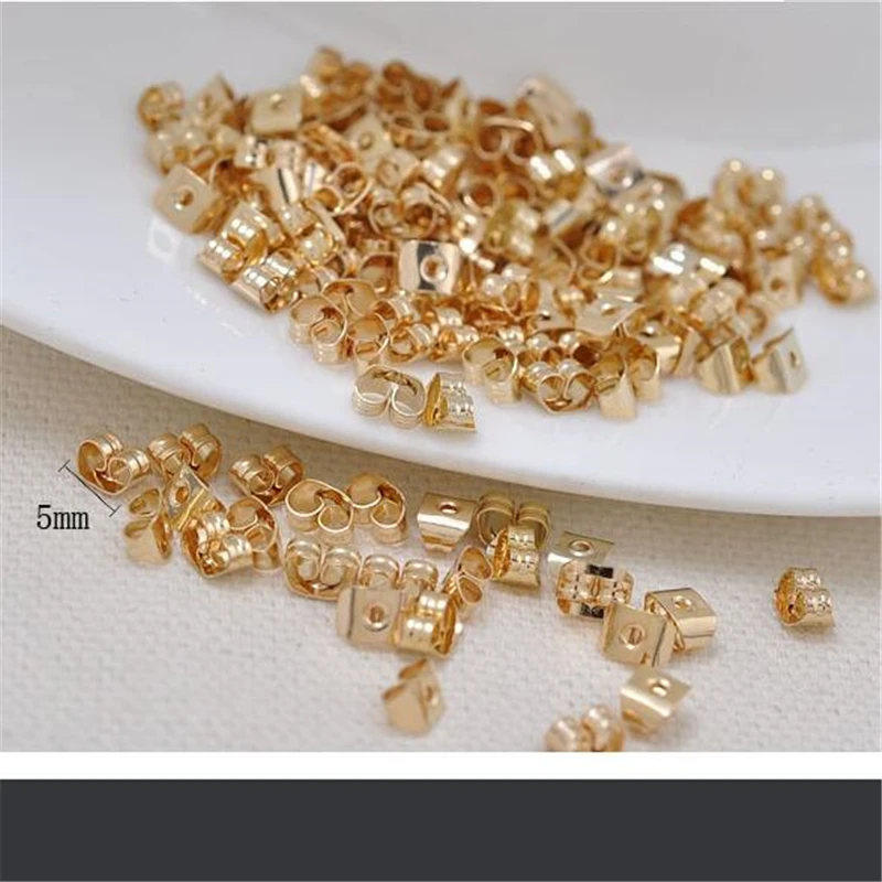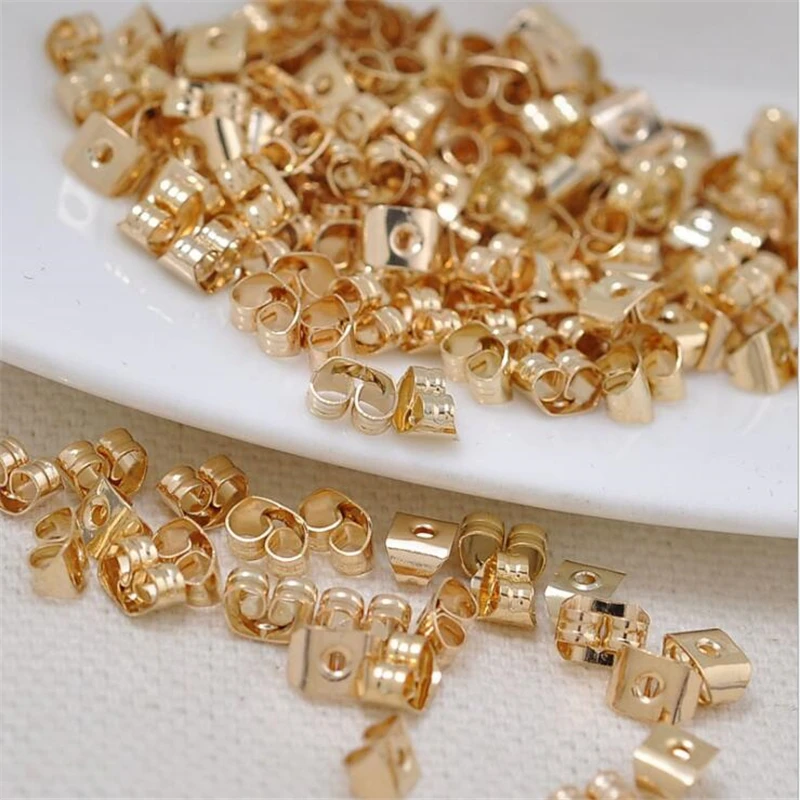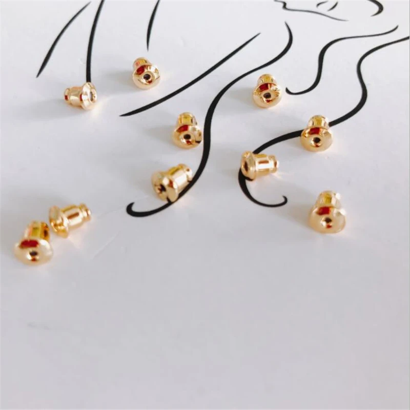 Латунные Заглушки для сережек с настоящим золотым покрытием, заглушки для сережек сделай сам, фурнитура для изготовления украшений, аксессуары, 30 шт.лот