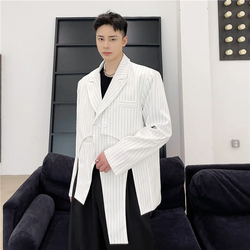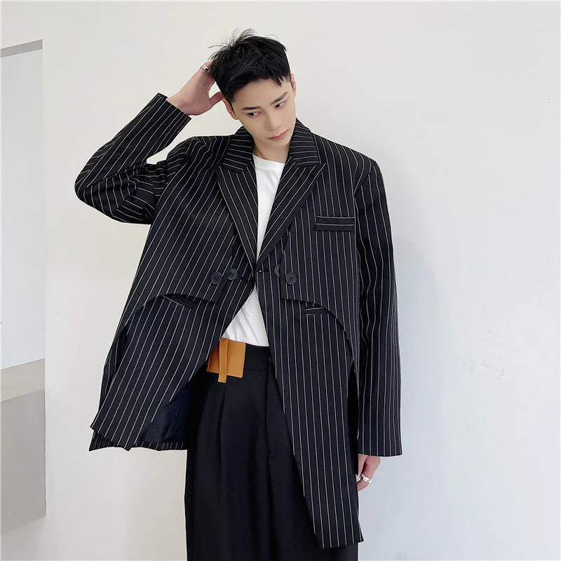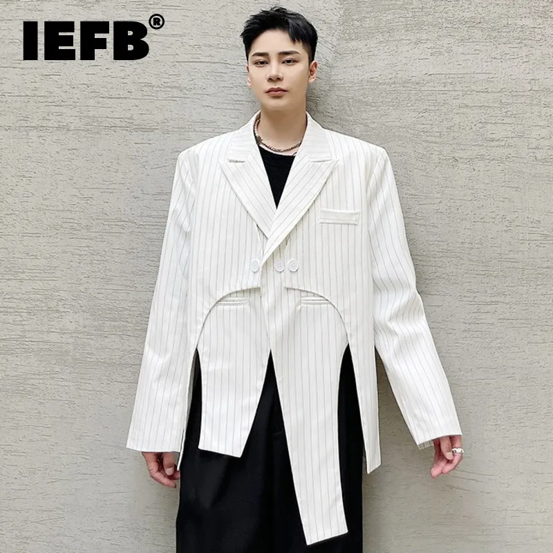 IEFB Tide модный костюм из двух предметов в полоску куртки для мужчин индивидуальный дизайн нестандартный Блейзер белый черный пальто 2022 9Y9259