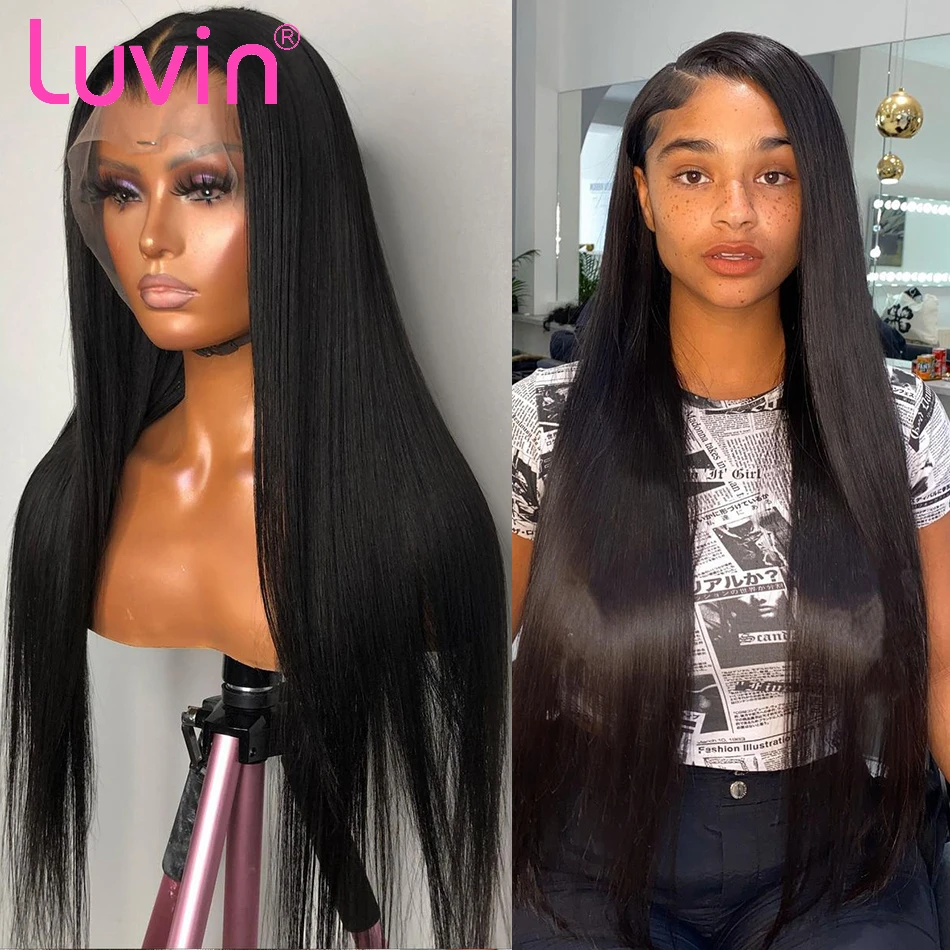 Luvin 30 32 дюйма, прямые 13х4 13х6 парики из натуральных волос на кружеве для черных женщин, бразильские парики на шнурках 4x4