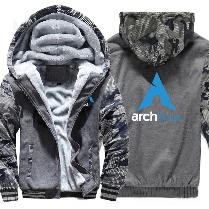 Мужская флисовая толстовка на молнии, зимняя теплая толстовка в стиле Linux