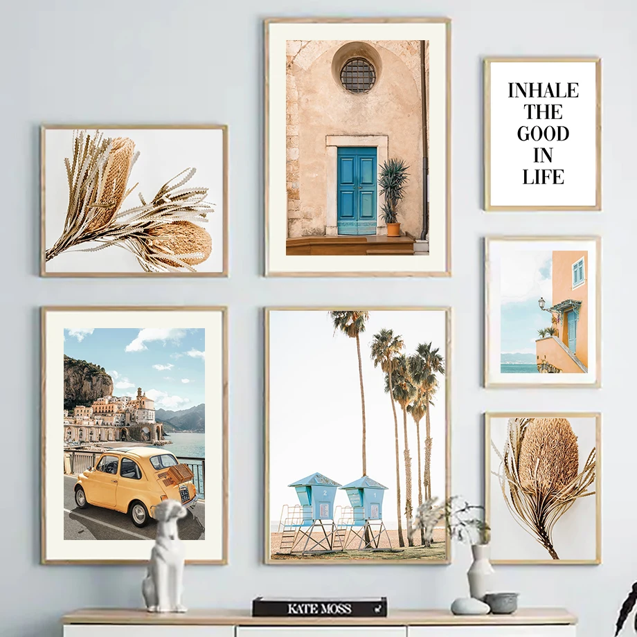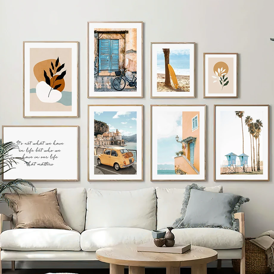 Дорожная морская пальма, доска для серфинга, настенная Картина на холсте, скандинавские постеры и принты, пейзаж, настенные картины для декора гостиной