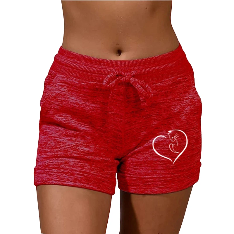 Шорты женские летние с заниженной талией и принтом в виде кошки
