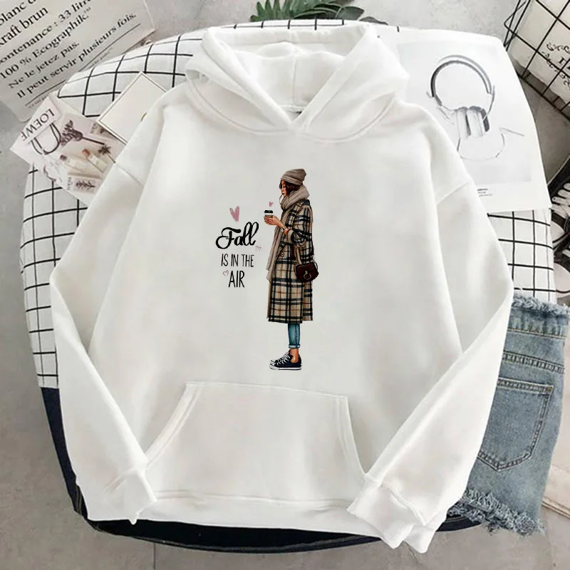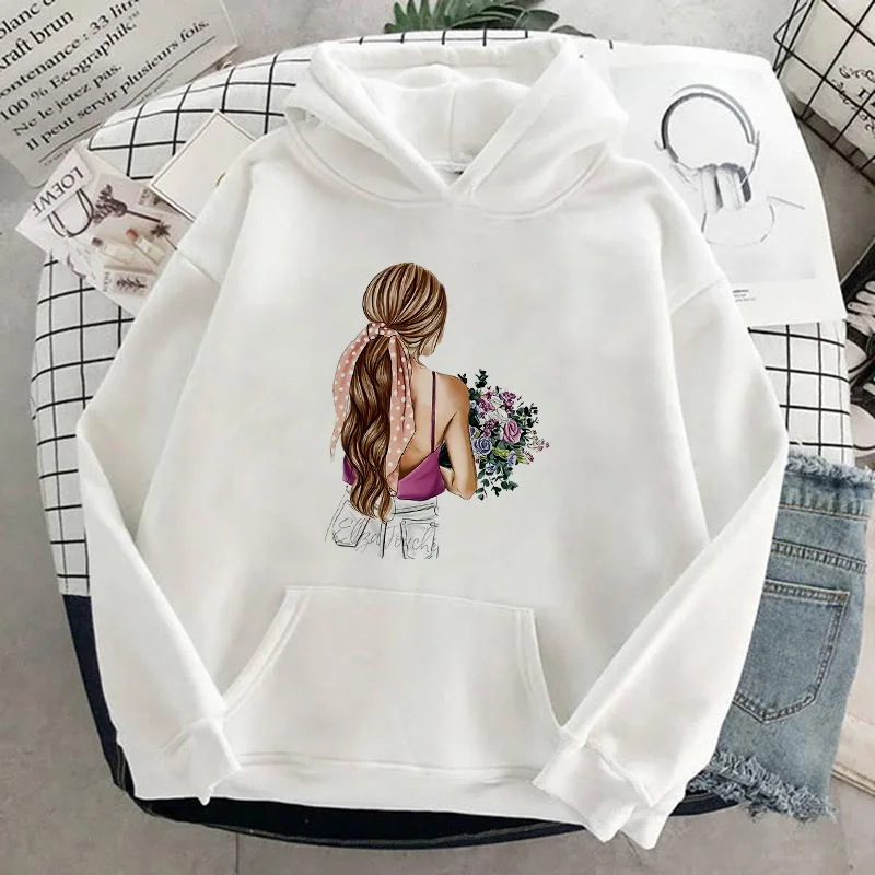 Осенне-зимняя Толстовка большого размера с красивым принтом, однотонные милые толстовки для женщин, верхняя одежда, толстовка с капюшоном, Женская Толстовка С Карманами