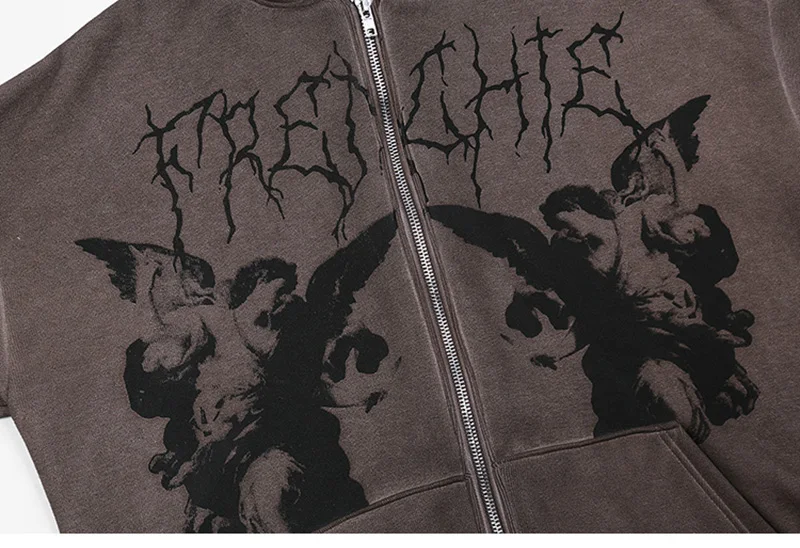Толстовка МужскаяЖенская Y2K, с капюшоном на молнии, с принтом анге...