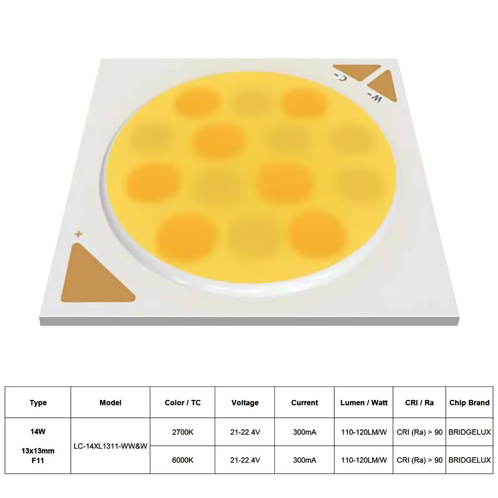 Чип COB High CRI Ra 90, 14 Вт, два цвета, 7 + 7 Вт, Теплый Холодный белый свет, 2700K, 6000K, два цвета, 1313, 1414, светодиодная лампа сделай сам, Трековый светильник, нижний свет