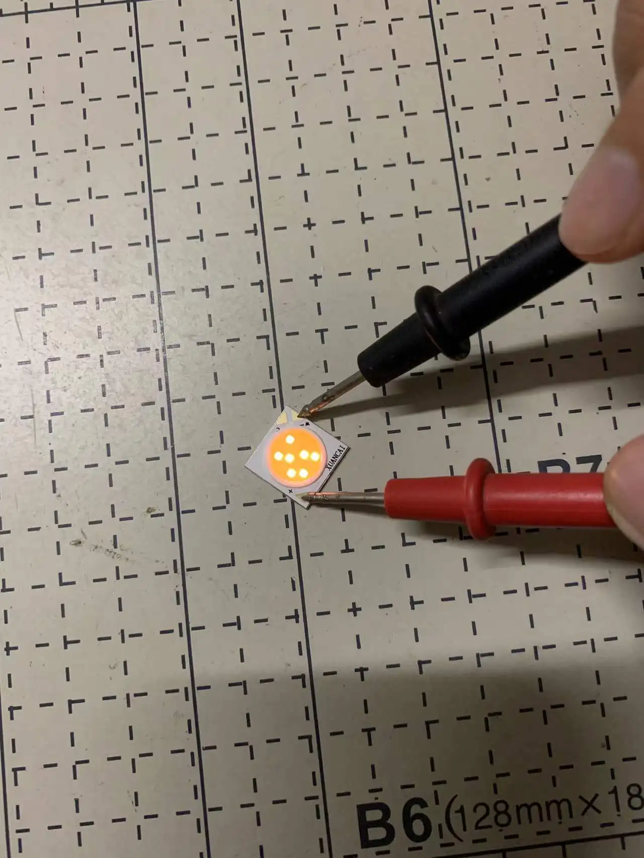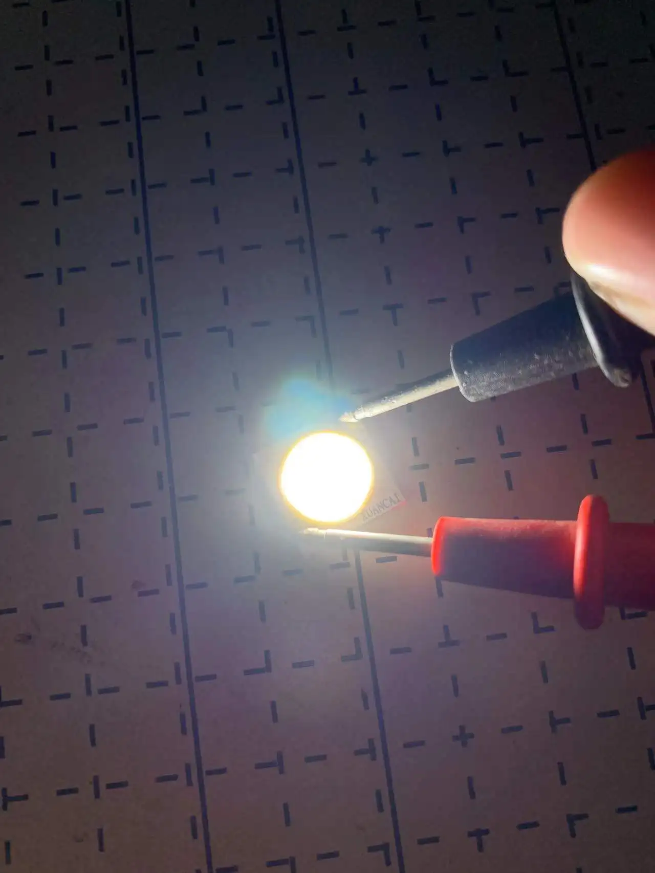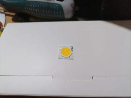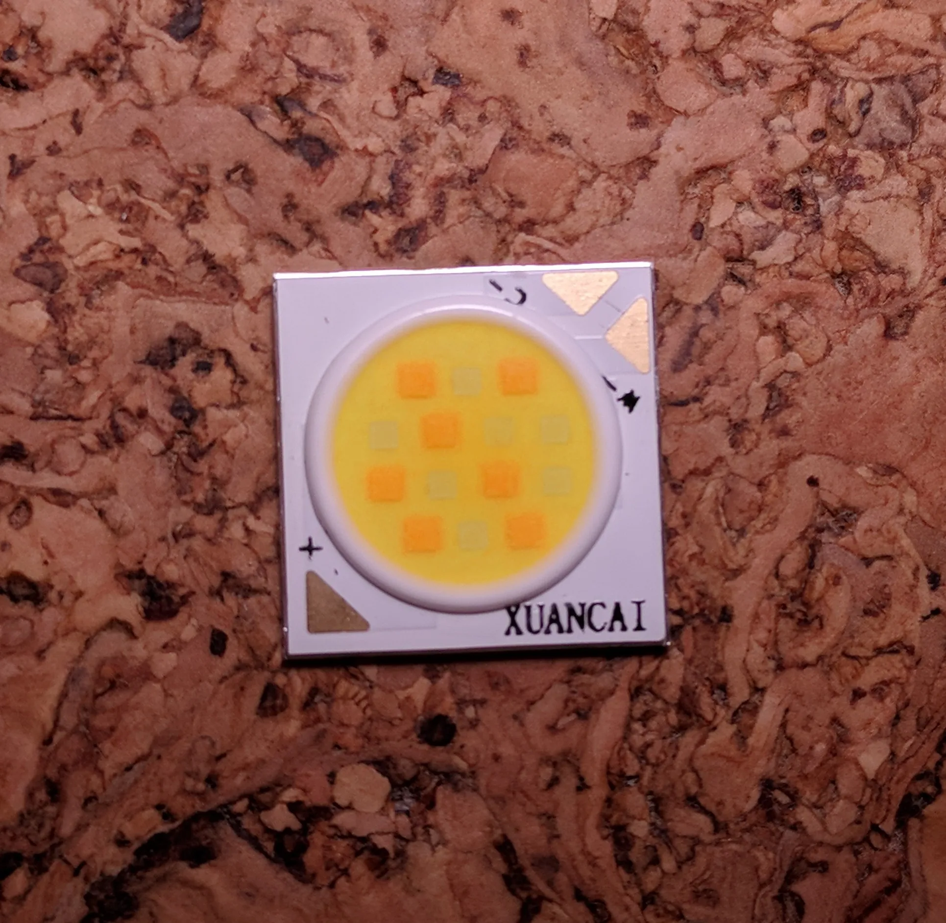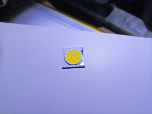 Брак. Внутри люминофора есть чёрный волос над кристаллом. Это значит, что будет локальный перегрев! Я знаю, о чём говорю. Например, у светодиодных сборок CREE при работе на максимальном режиме, пролетающая мимо, пыль дымится, а если поднести бумагу, то она станет коричневой и пойдёт дым! От белой бумаги! А тут чёрный волос, который будет поглощать больше света! И такая работа таких светодиодов нормальна! Сборка так проработала 3 месяца 24/7! И характеристики света остались неизменными. Потом я переехал.
