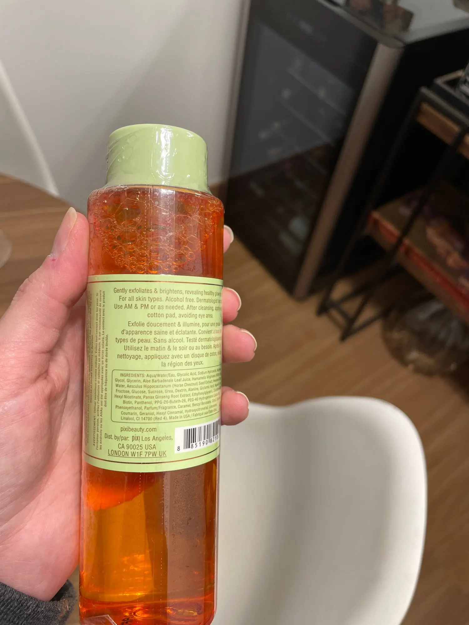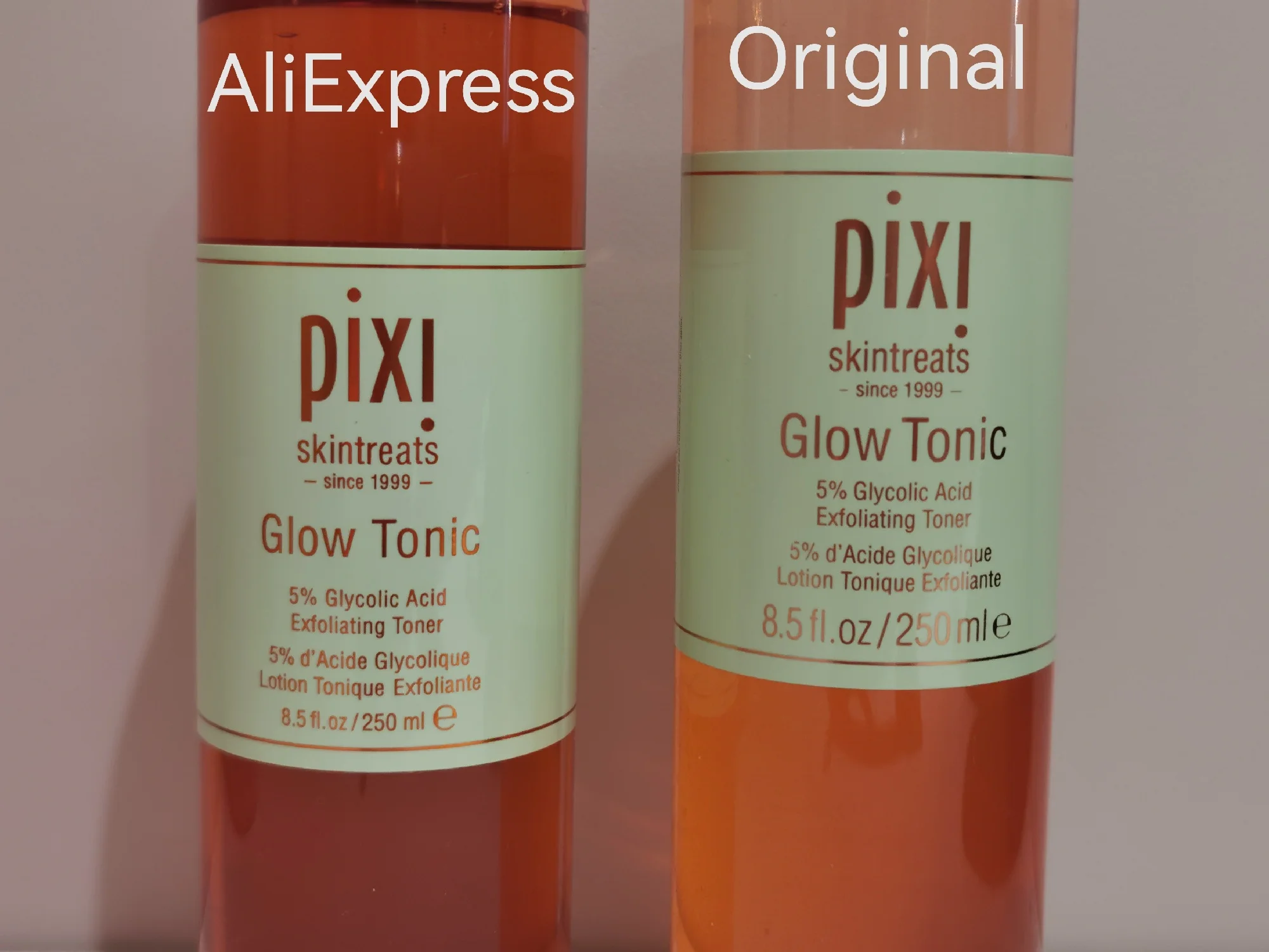 Получила тоник пару недель назад. Я уже около 5 лет пользуюсь оригинальным тоником Pixi. Увидела этот тоник на Ali по достаточно дешевой цене и решила попробовать. Конечно особых надежд не питала на его оригинальность, но думала, что хотя бы содержание гликолиевой кислоты будет 5% и это решит проблему шелушения моей кожи. В реальности этот тоник не оригинальный и своих заявленных функций не выполняет. Упаковка разная, запах этого тоника не такой яркий как оригинального, лицо не освежает и не щиплет как оригинал. Я пользовалась этим тоником 5 дней каждый день утром и вечером, шелушение кожи вернулось с его использованием. Так что он подойдет только для очещения кожи, а какого то результата от него не стоит ждать. И то не понятно какой у него реальный состав, т к на бутылке написано полное враньё. Т к это не оригинал, подделка.