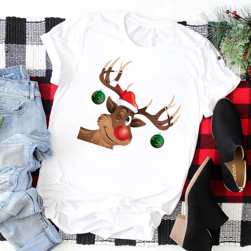 Женская футболка с рисунком Санта-Клауса, оленя icon star icon star icon star icon star icon star