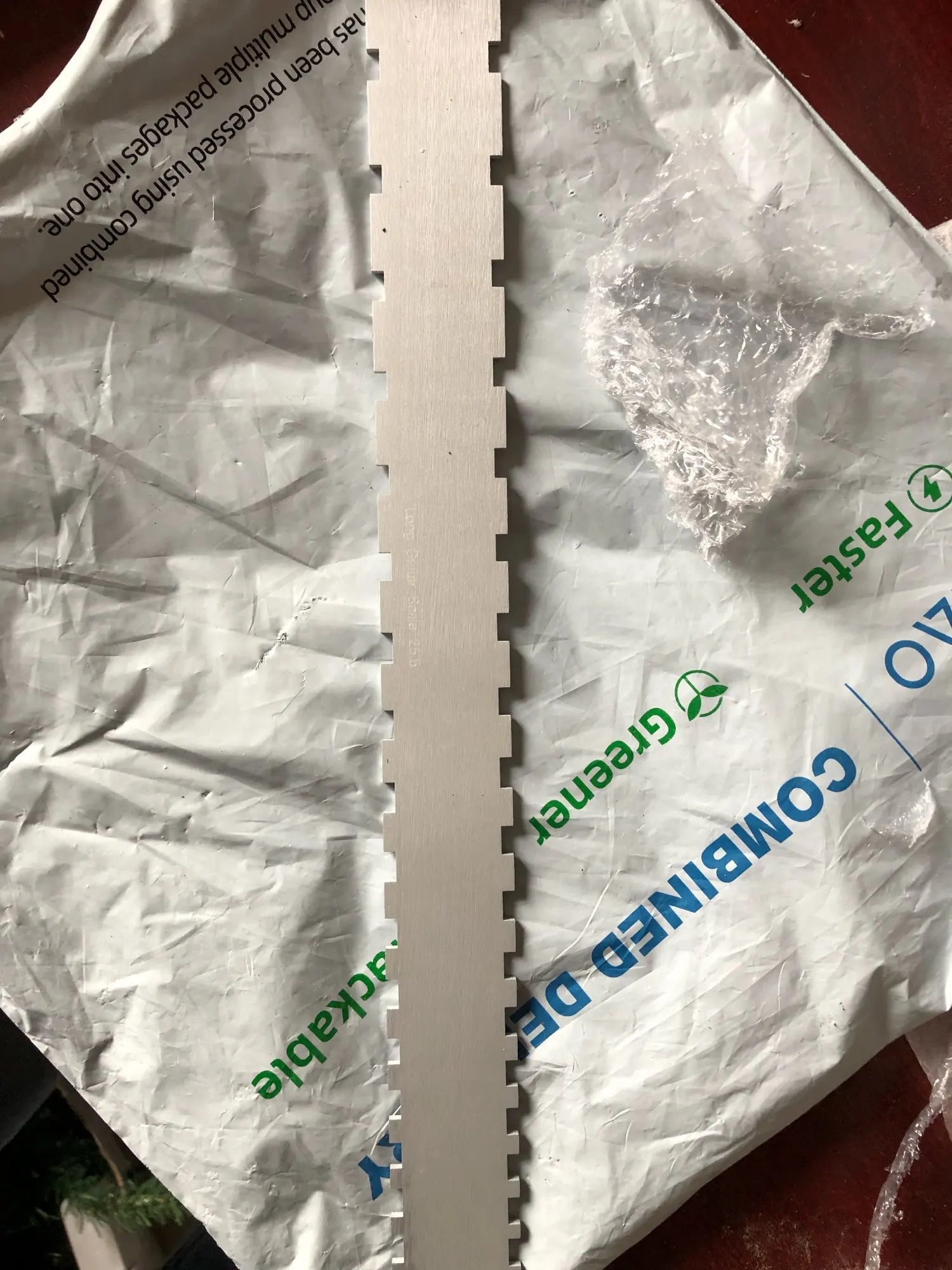 Линейка очень хорошая, меры отличные, но линейка прибыла пирог был отправлен в очень плохо сделано без какой-либо защиты просто сгибаться при транспортировке.