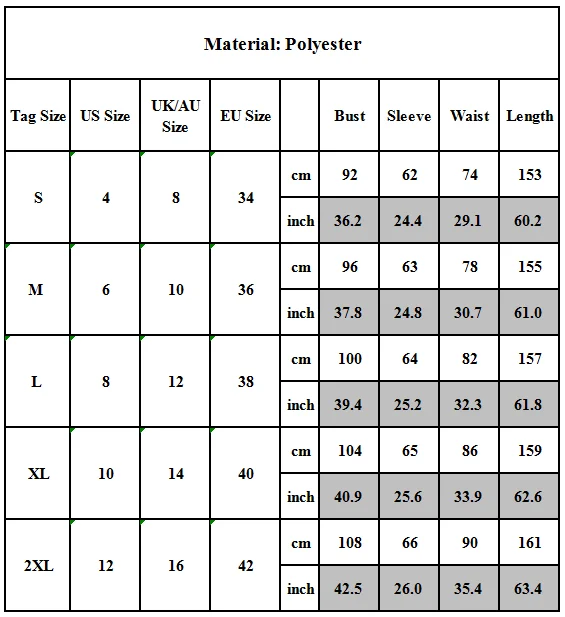 Размер: XXL, обхват груди: 108 см, рукав: 66 см, обхват талии: 90 см, длина: 161 см