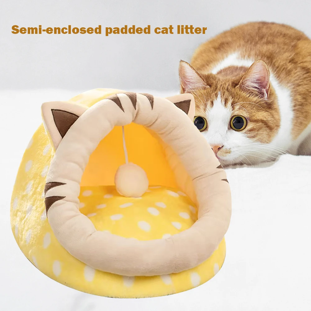 Флисовая палатка-домик для кошек, зимняя теплая Лежанка в форме ушей, съемная полузакрытая маленькая Лежанка для домашних животных