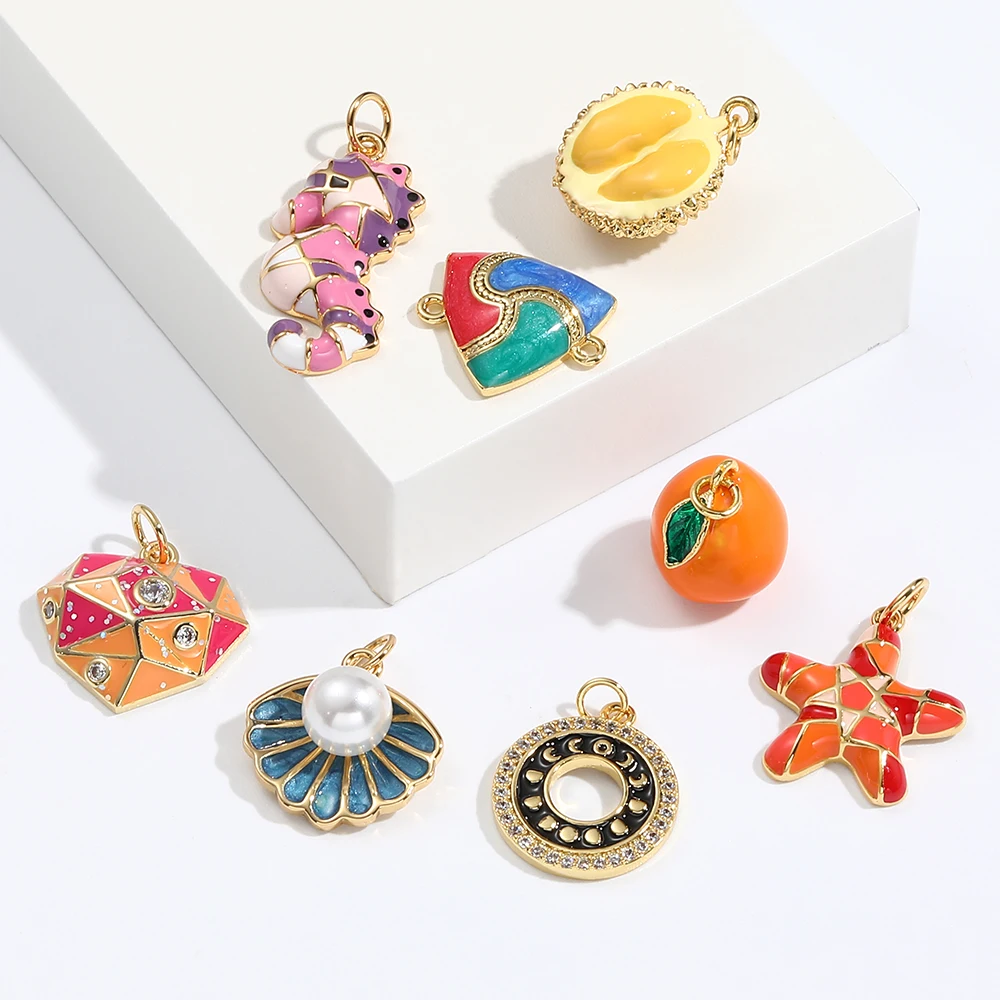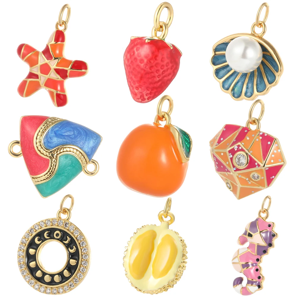 Эмалевые Подвески с изображением животных, фруктов, звезд, циркона, сделай сам, Подвески для изготовления ювелирных изделий, подвеска, ожерелье, браслет, серьги, сделай сам, аксессуары, золото