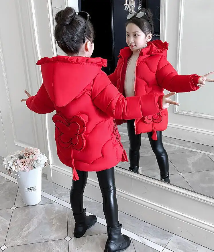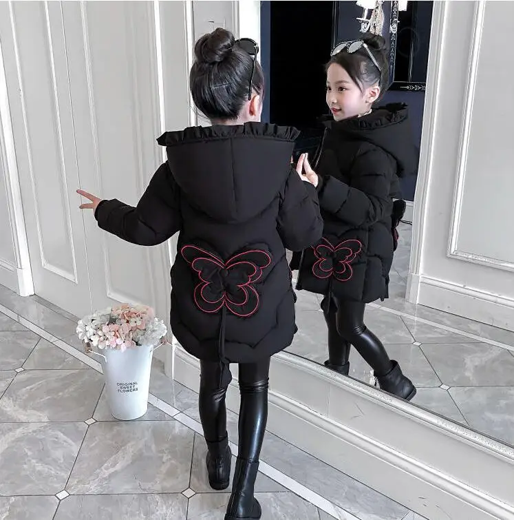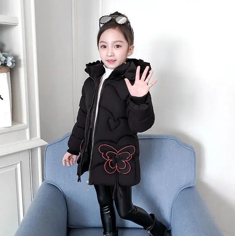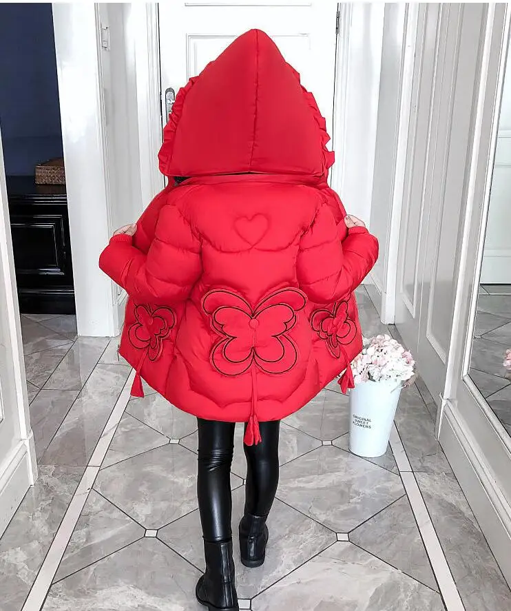 Зимняя плотная теплая Женская куртка с аппликацией бабочки, милая плотная верхняя одежда с капюшоном для детей, детская ветровка, пальто