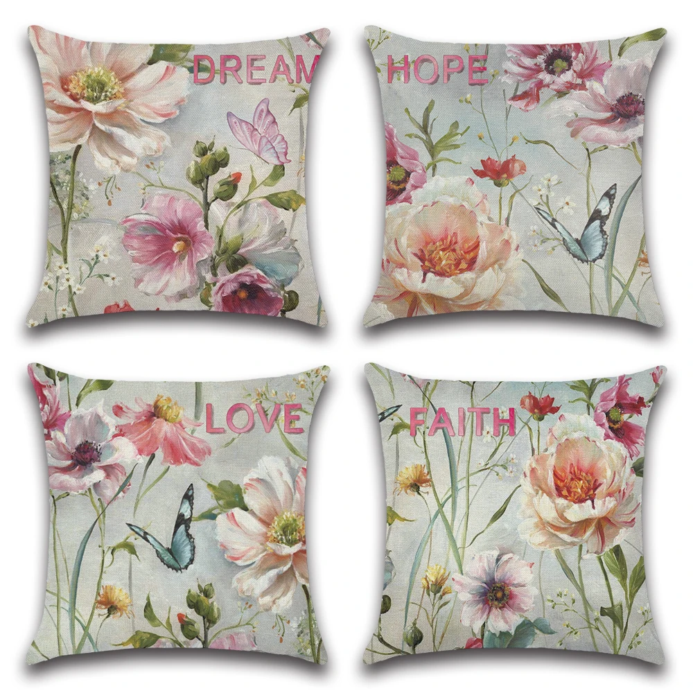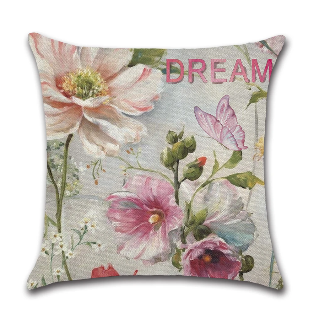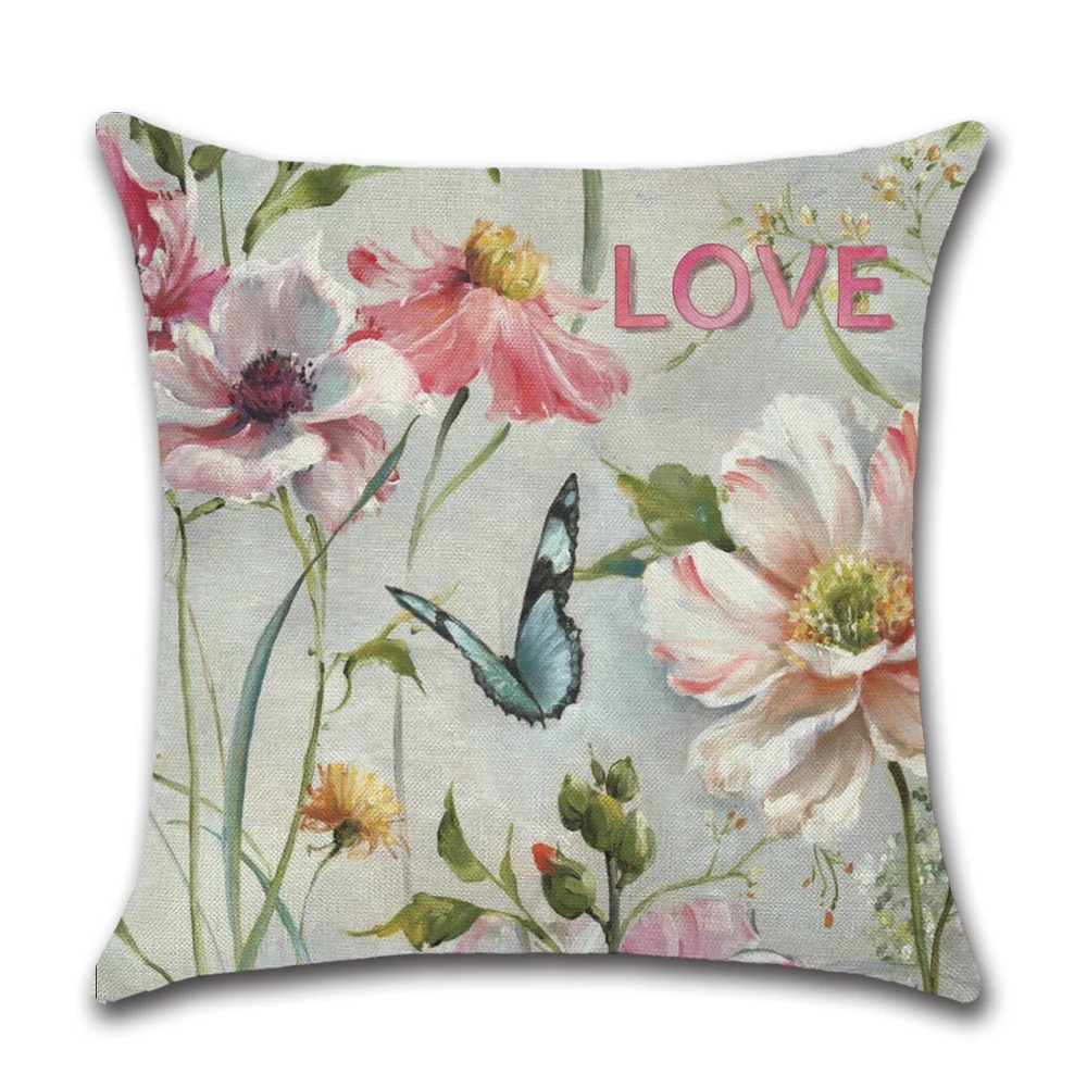 Уличная Водонепроницаемая наволочка 45x45, льняная наволочка в стиле ретро с цветочным рисунком, декоративная наволочка для дивана, гуаши, бабочки, цветов