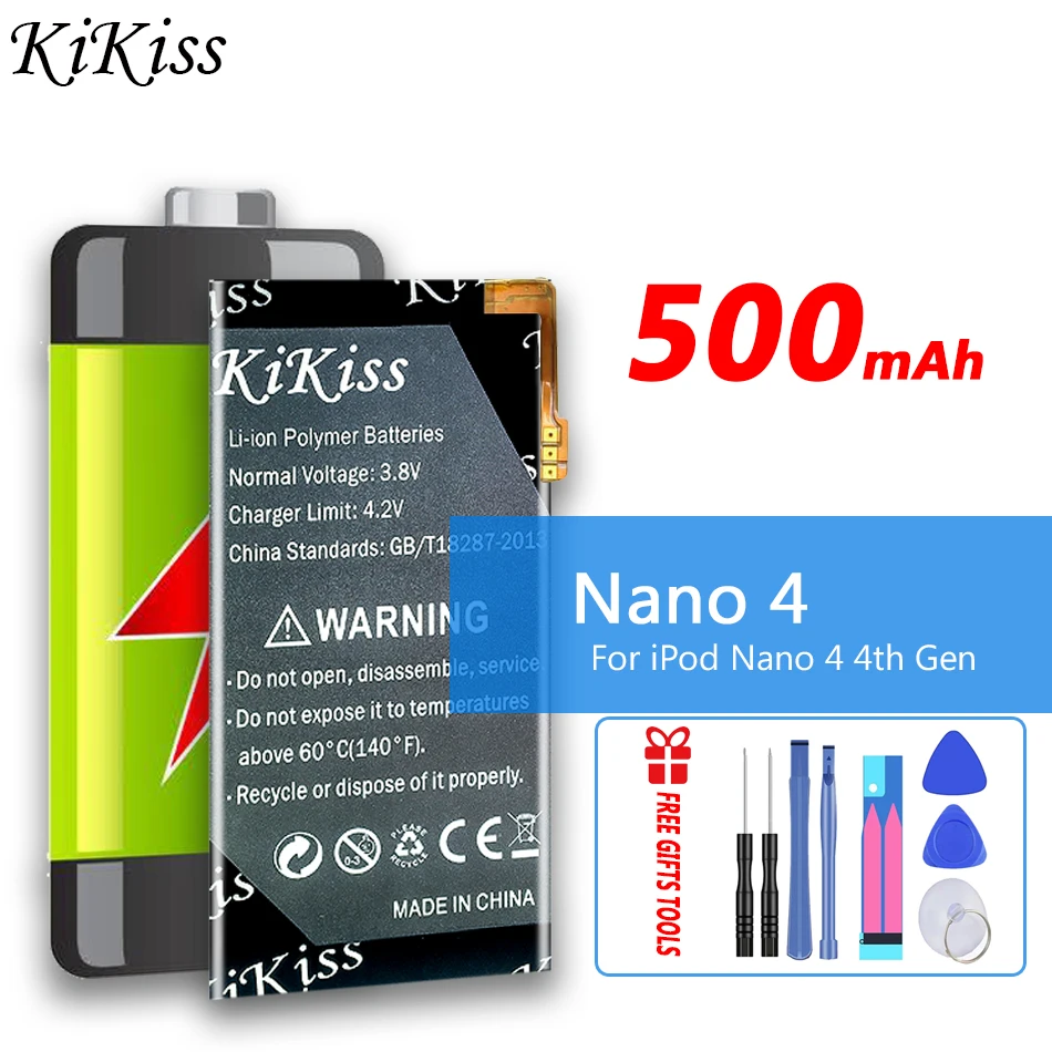 Литий-ионный полимерный аккумулятор KiKiss высокой емкости 500 мАч, замена для iPod Nano 4 4-го поколения, аккумулятор Nano4 с инструментами