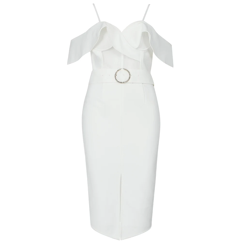 Женское платье-миди с коротким рукавом, летнее привлекательное Белое Облегающее Бандажное платье с разрезом, вечернее Клубное платье, 2021
