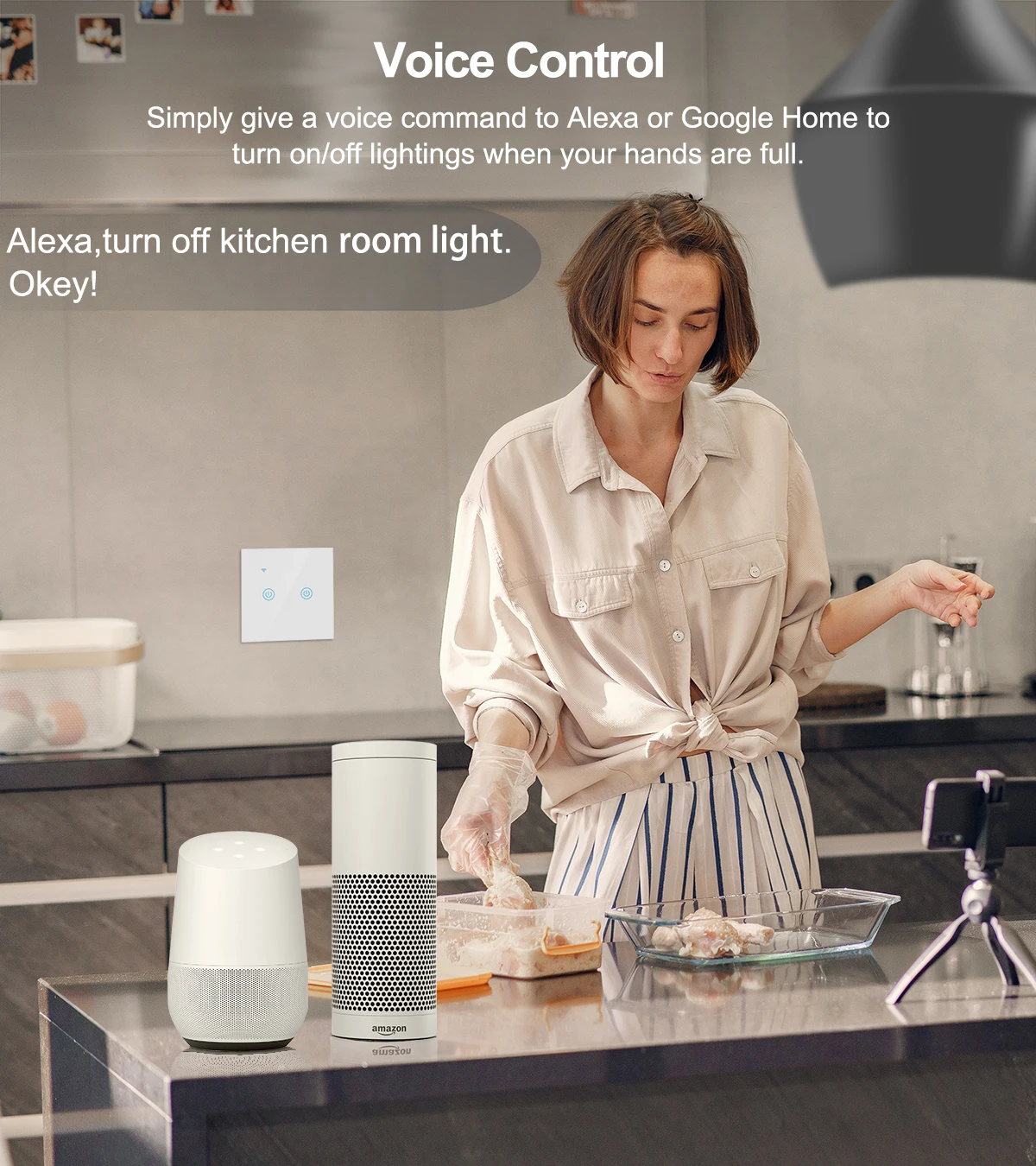 2. Отличается от традиционных общих переключателей, этот смарт-переключатель может управляться различными способами в отдельности с лучшим значением, таким как управление приложением, сенсорное управление, голосовое управление.