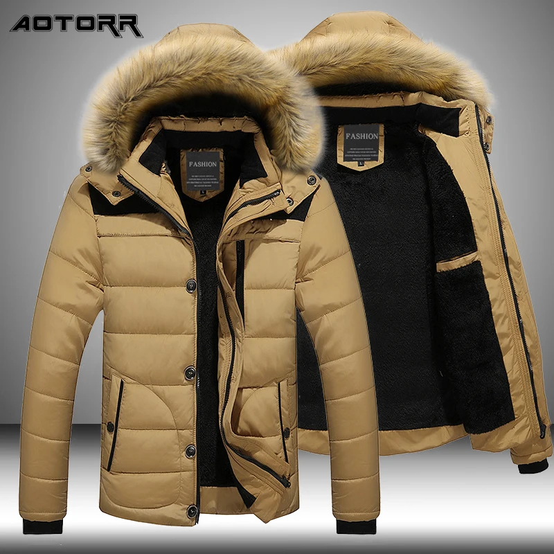 Мужская куртка с меховым воротником, с капюшоном, зимняя, плотная, ...