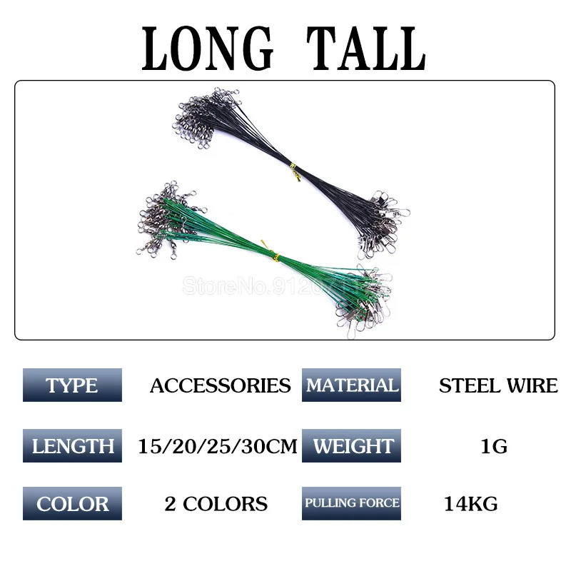 Характеристики: на 100% абсолютно новый и высококачественная стальная проволока соединяются с рыболовным крючком и предотвращают защелку лески рыбами. Идеально подходит для использования в соленой или пресной воде. Спецификация: Размер: 15 см, 20 см, 25 см, 30 см Количество: 20 штук или 10 штук для каждого размера Материал: стальной провод цвет: зеленый черный тяговая сила: 20 кг Примечание: примечание полной длины включает длину двух вертлюгов.