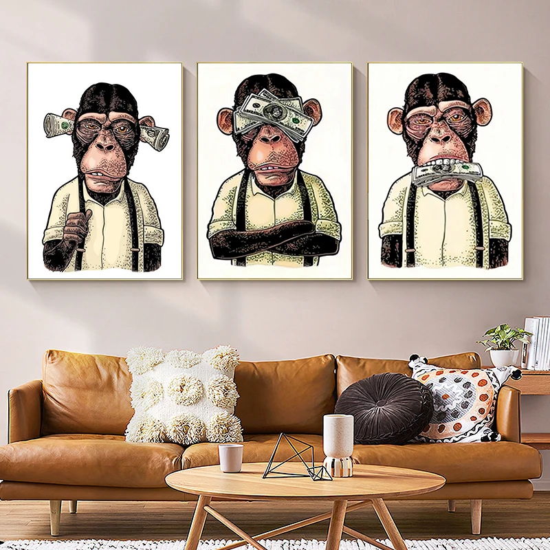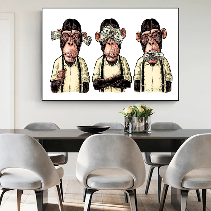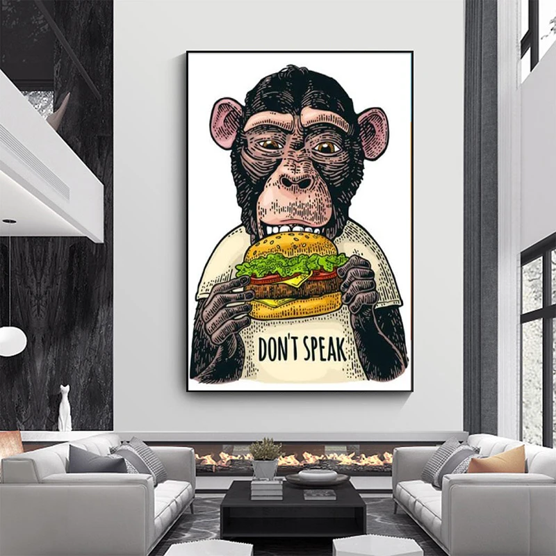 Уличная поп-арт граффити обезьяна холст живопись настенное искусств...