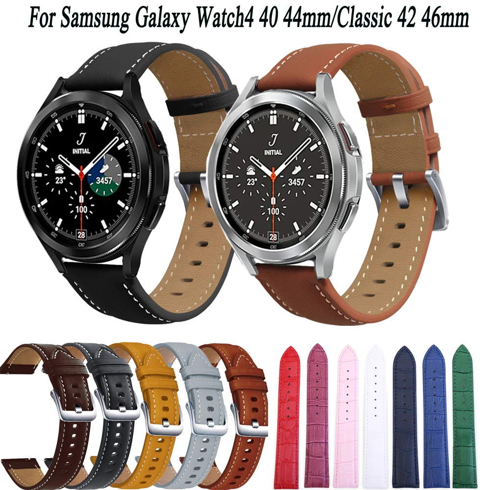 Ремешок из натуральной кожи для наручных часов, оригинальный браслет для Samsung Galaxy Watch 4 40 44 ммWatch 4 Classic 42 46 мм, 20 мм