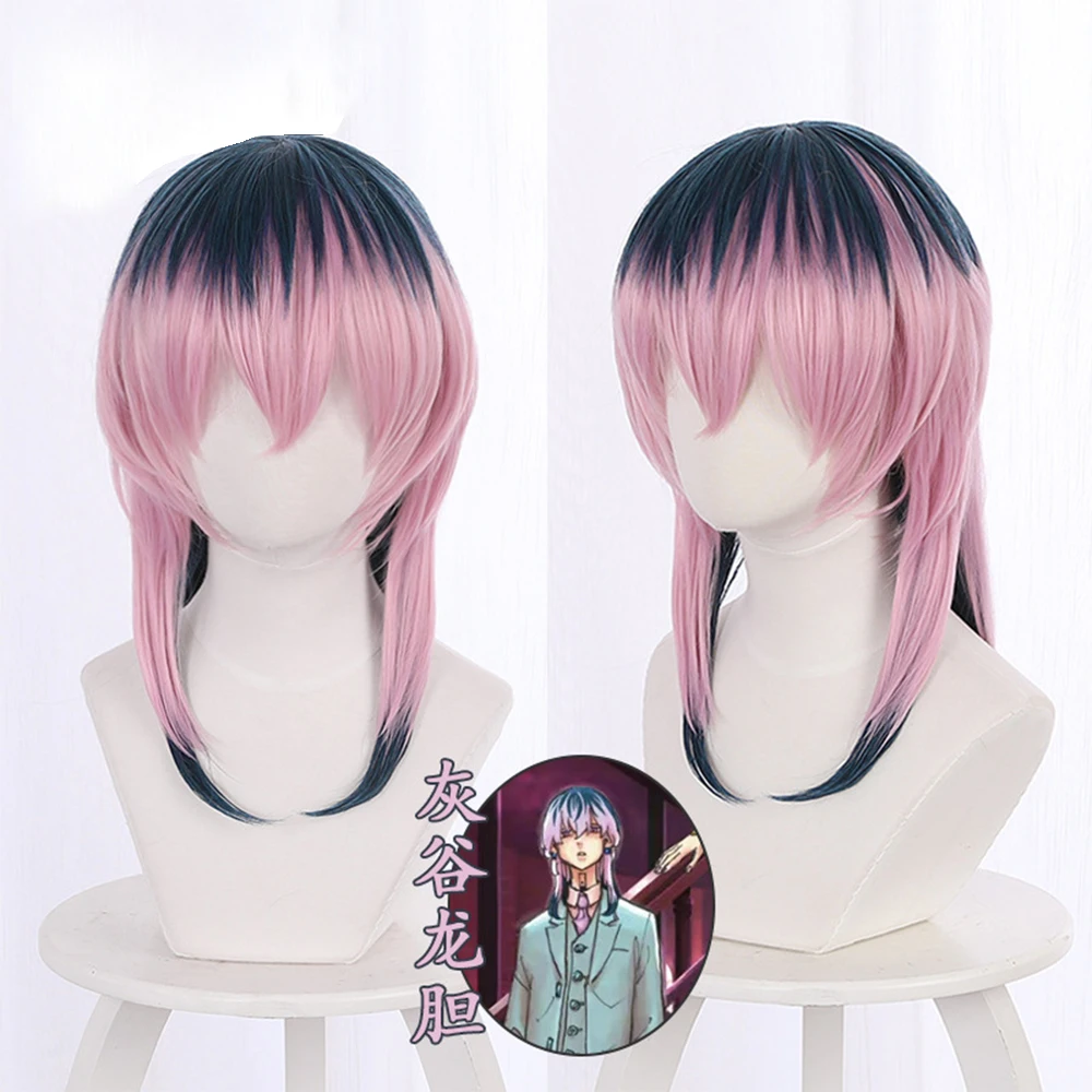 Парик для косплея риндоу хайтани, синтетический длинный прямой парик с градиентом синего, розового цветов, термостойкий, для взрослых, с шапочкой