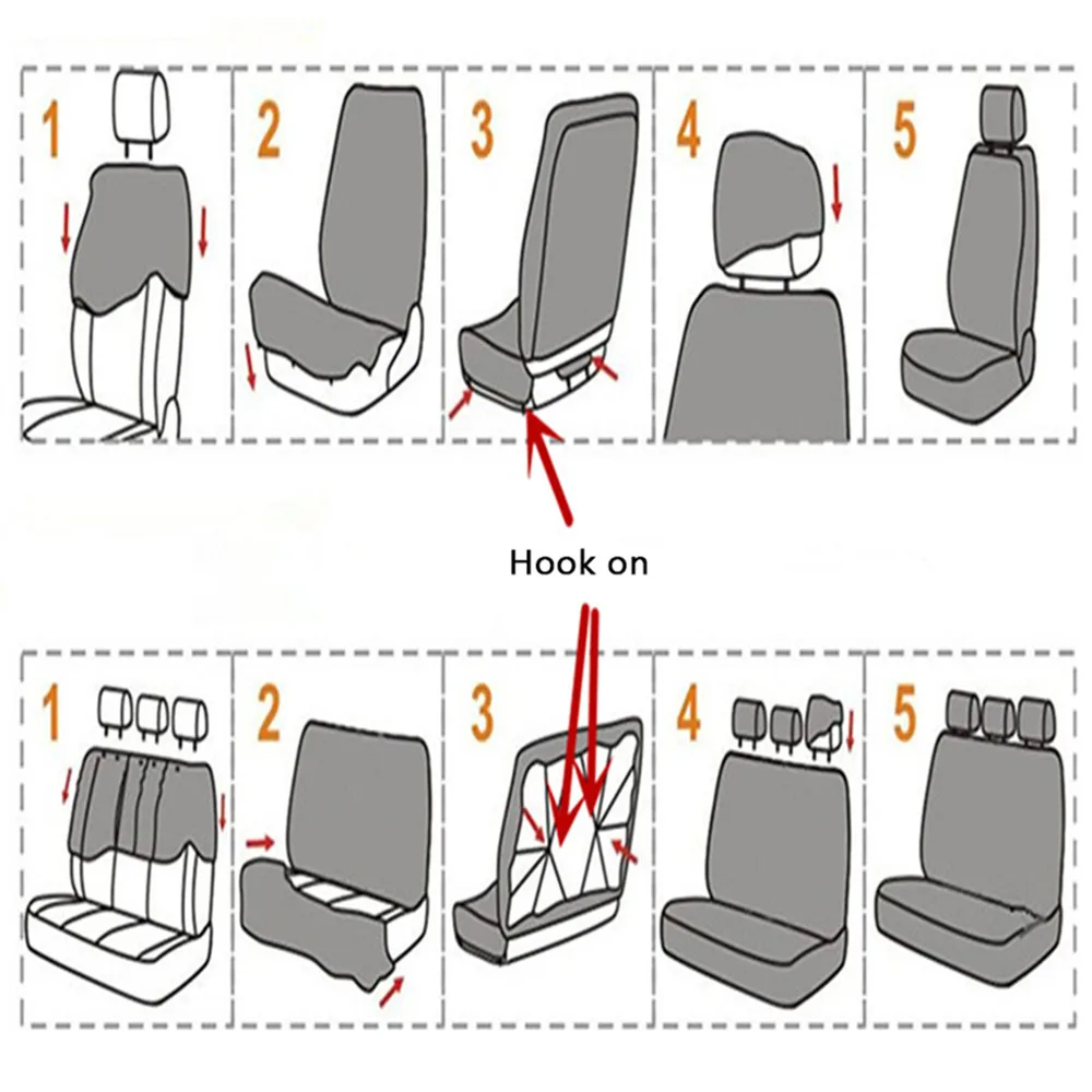 5 * Чехол на подголовник + 2 * Чехол на переднее сиденье + 1 * чехол на заднее сиденье + 1 * чехол на заднее сиденье