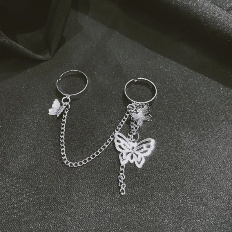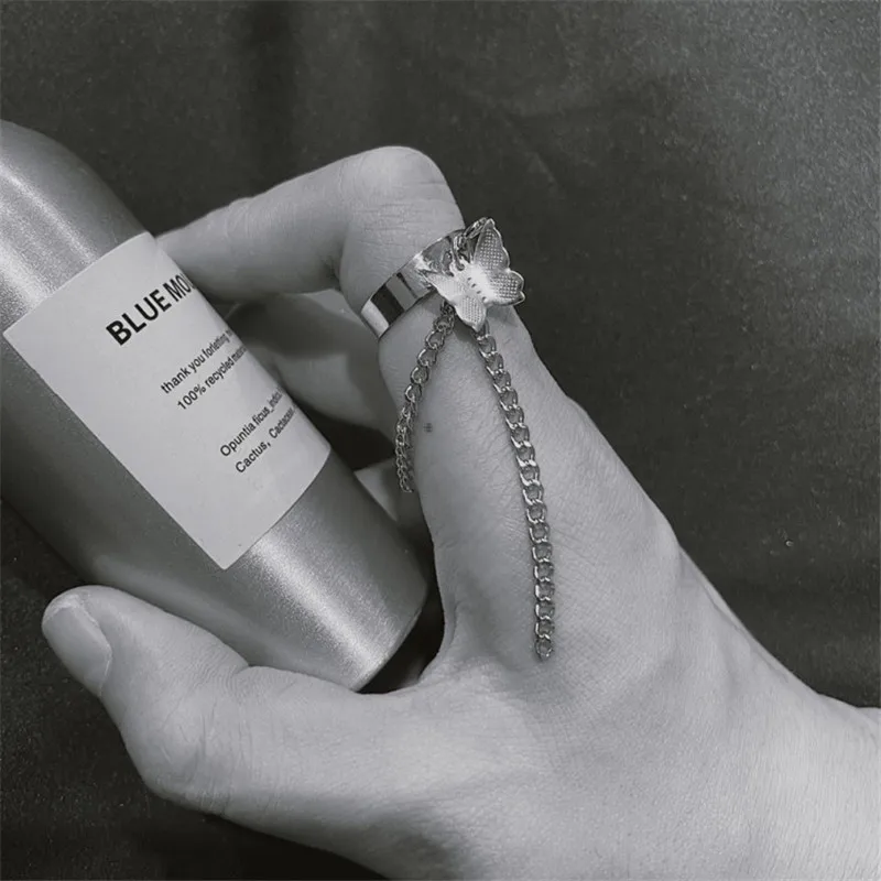 Новинка 2021, кольца в стиле панк с бабочкой, многослойная Регулируемая цепочка, стандартные кольца из сплава для женщин, подарок на вечеринку