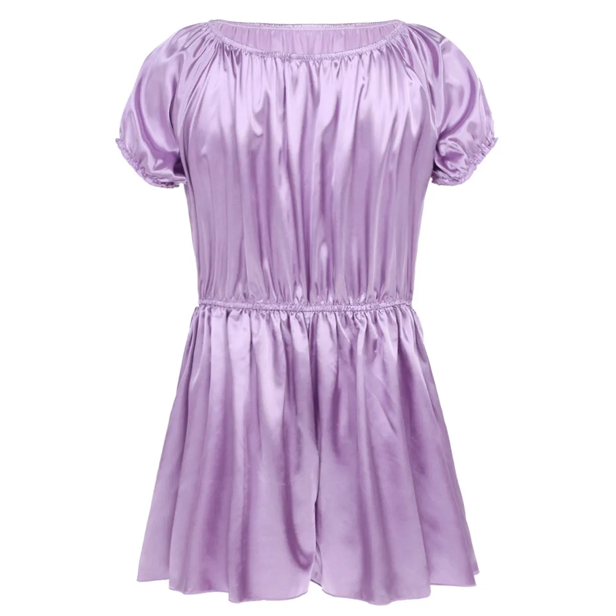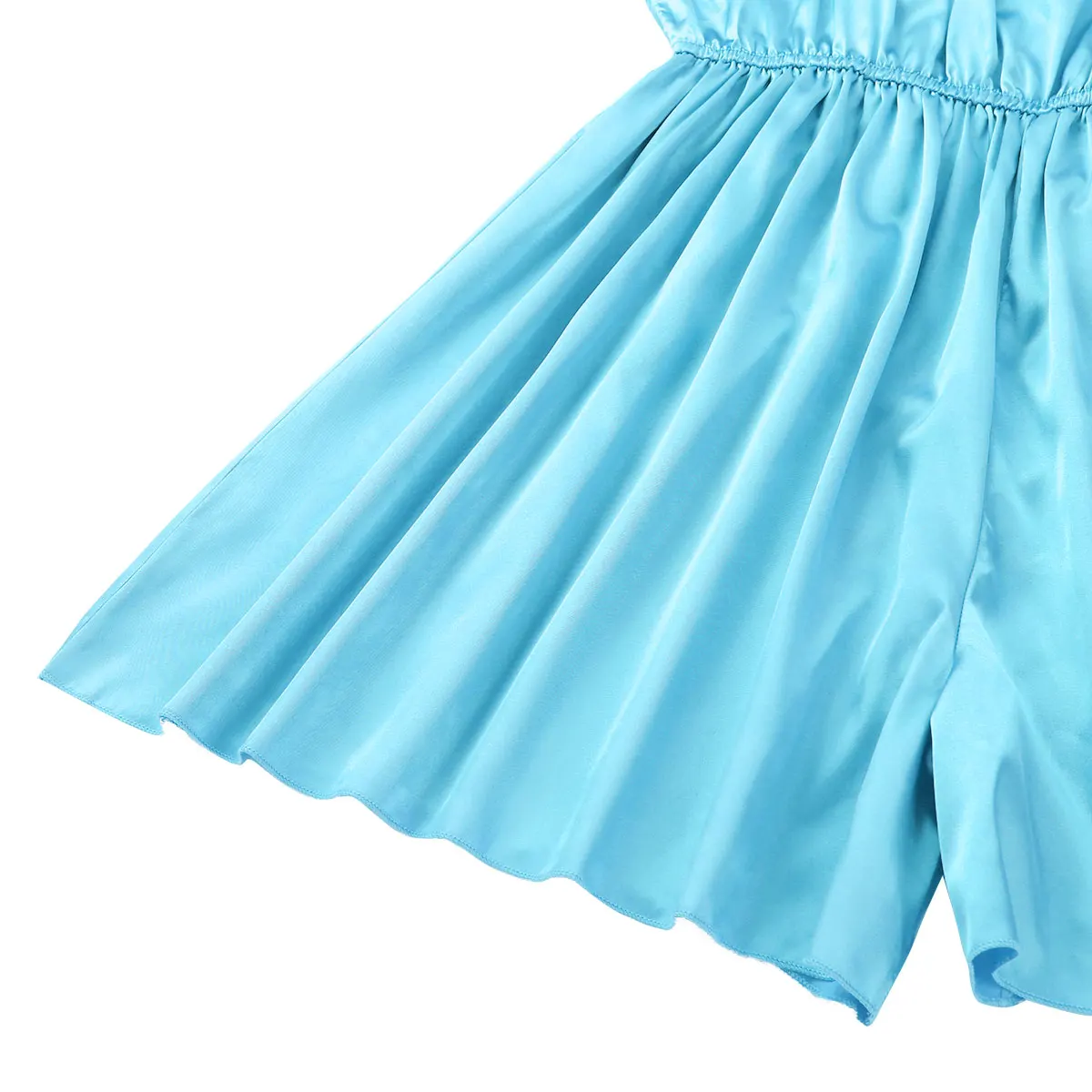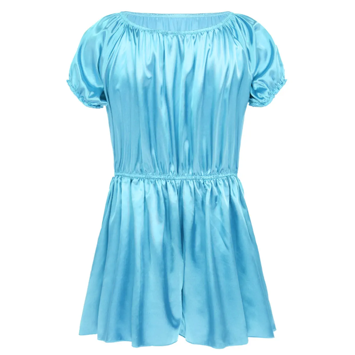 Мужское нижнее белье, комбинезон, эластичный Блестящий атласный комбинезон с рюшами, модель нижнее белье Sissy
