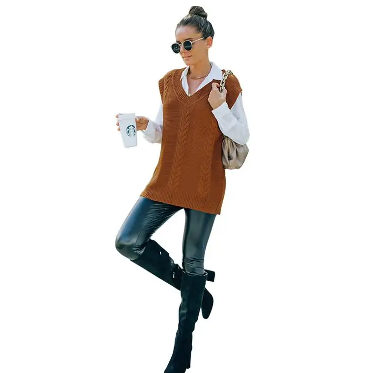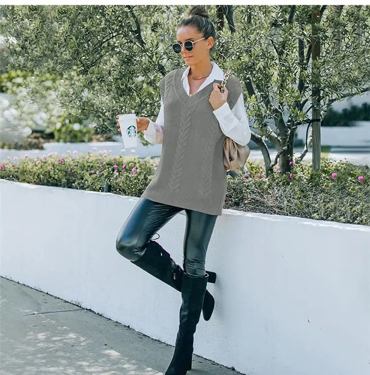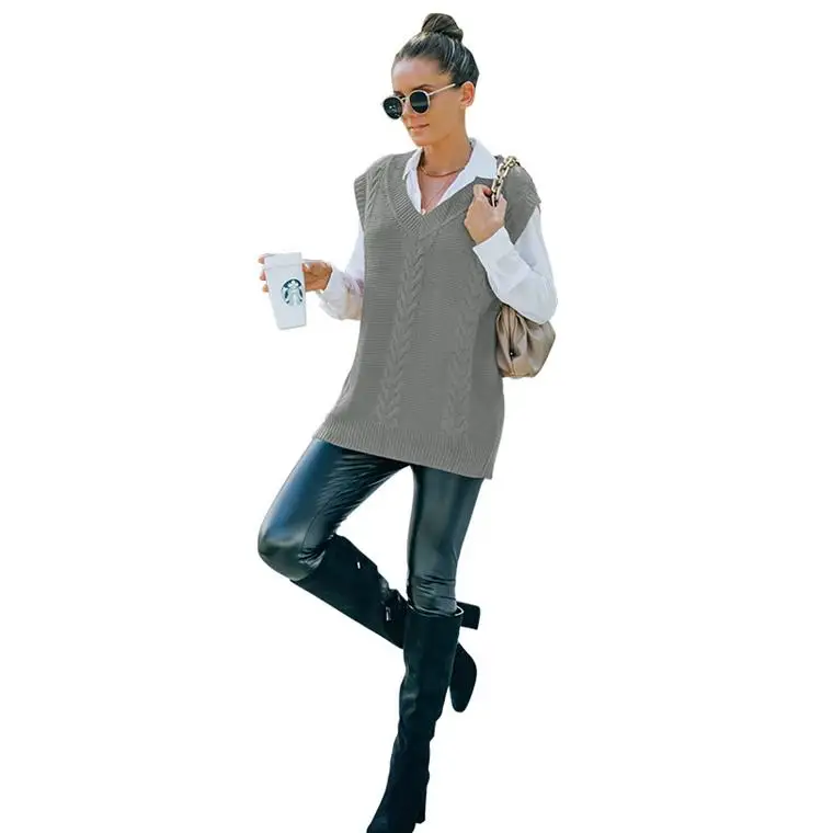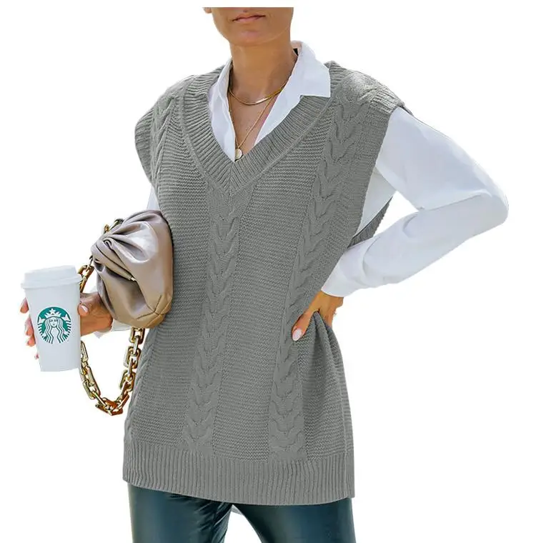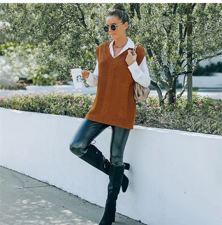 Жилет, свитер, женские осенне-зимние свитера, вязаный Топ, облегающий женский свободный свитер, вязаный свитер, жилет, Женский пуловер