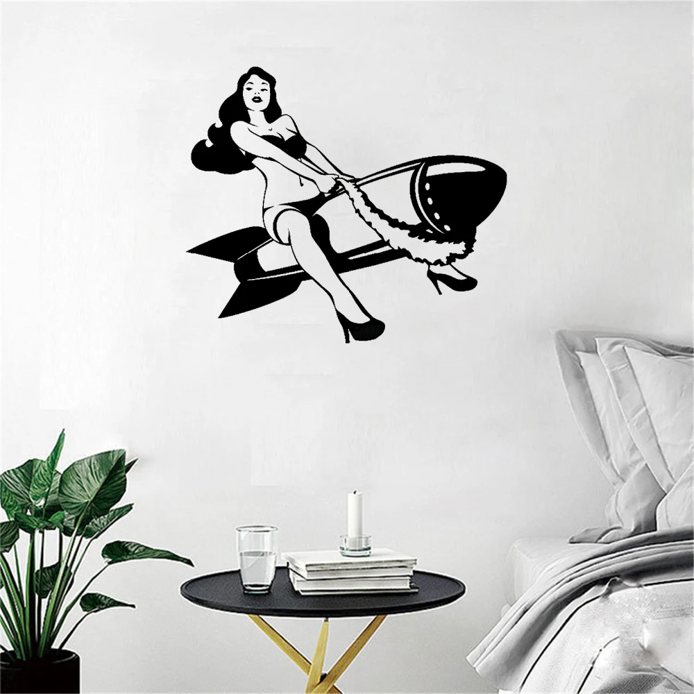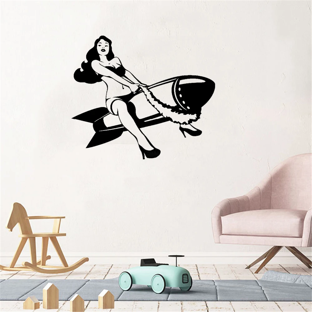 Винтажная Наклейка на стену с изображением сексуальной девушки в виде бомбы, сексуальная красивая женщина, наклейка на стену для спальни, съемная виниловая художественная роспись dw20563
