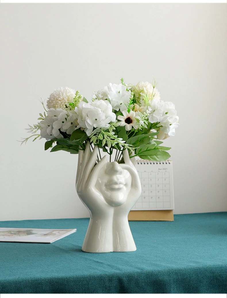 Керамическая ваза с изображением человеческого лица и цветов, творческая портретная ваза, искусственная человеческая голова, искусственная Прямая поставка