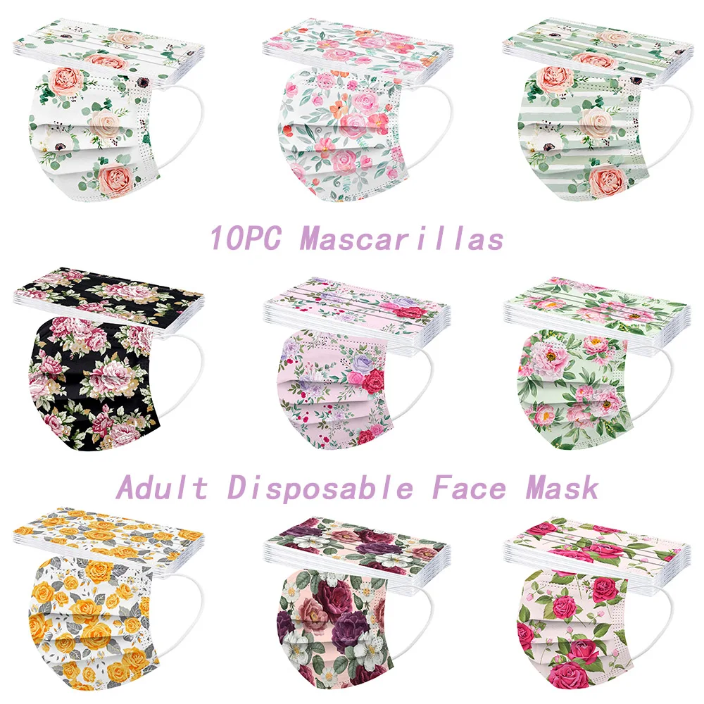 10 шт. Модные женские одноразовые маски с цветами 3-слойная защитна...