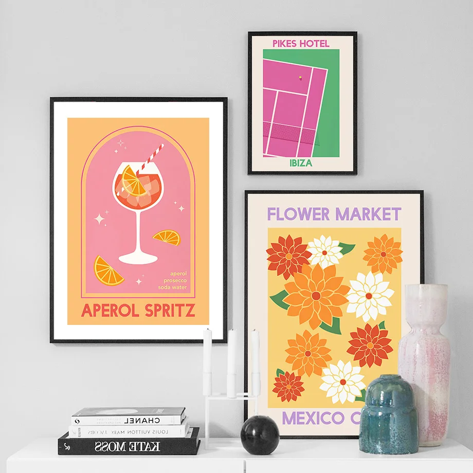 Картина на холсте с изображением фруктов Пикассо, коктейлей, миконо...