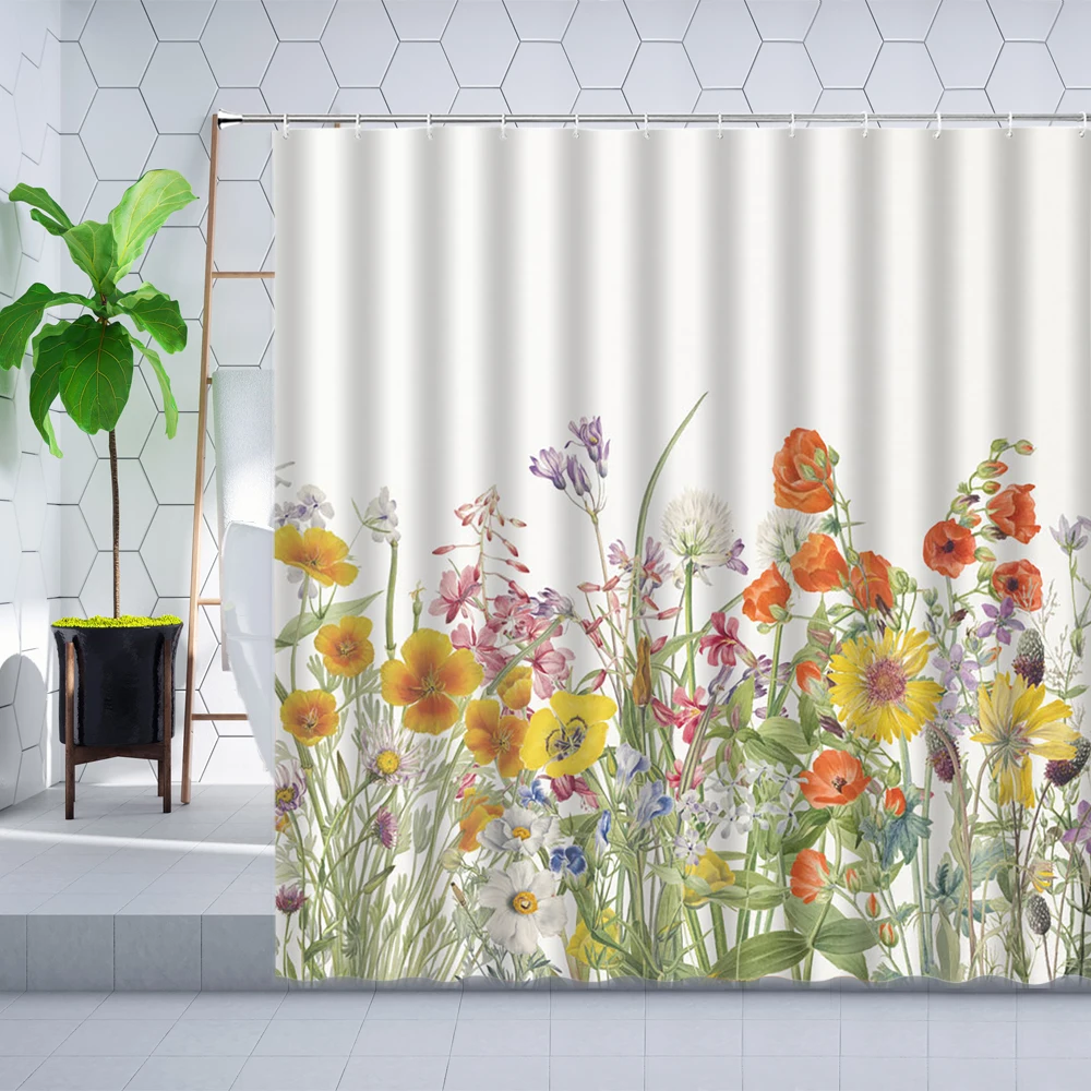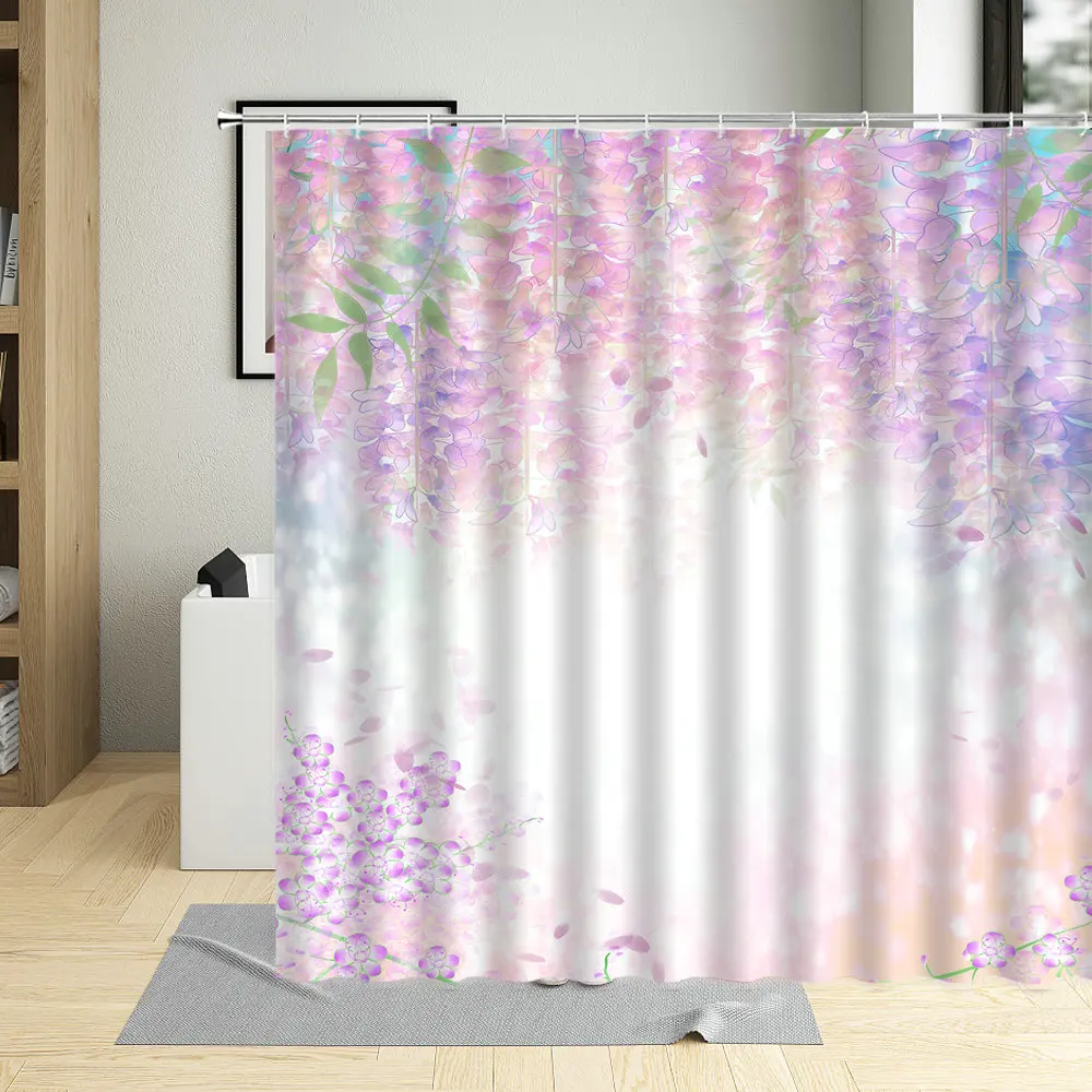 Занавеска для душа с цветочным принтом, s Весенняя декоративная зан...