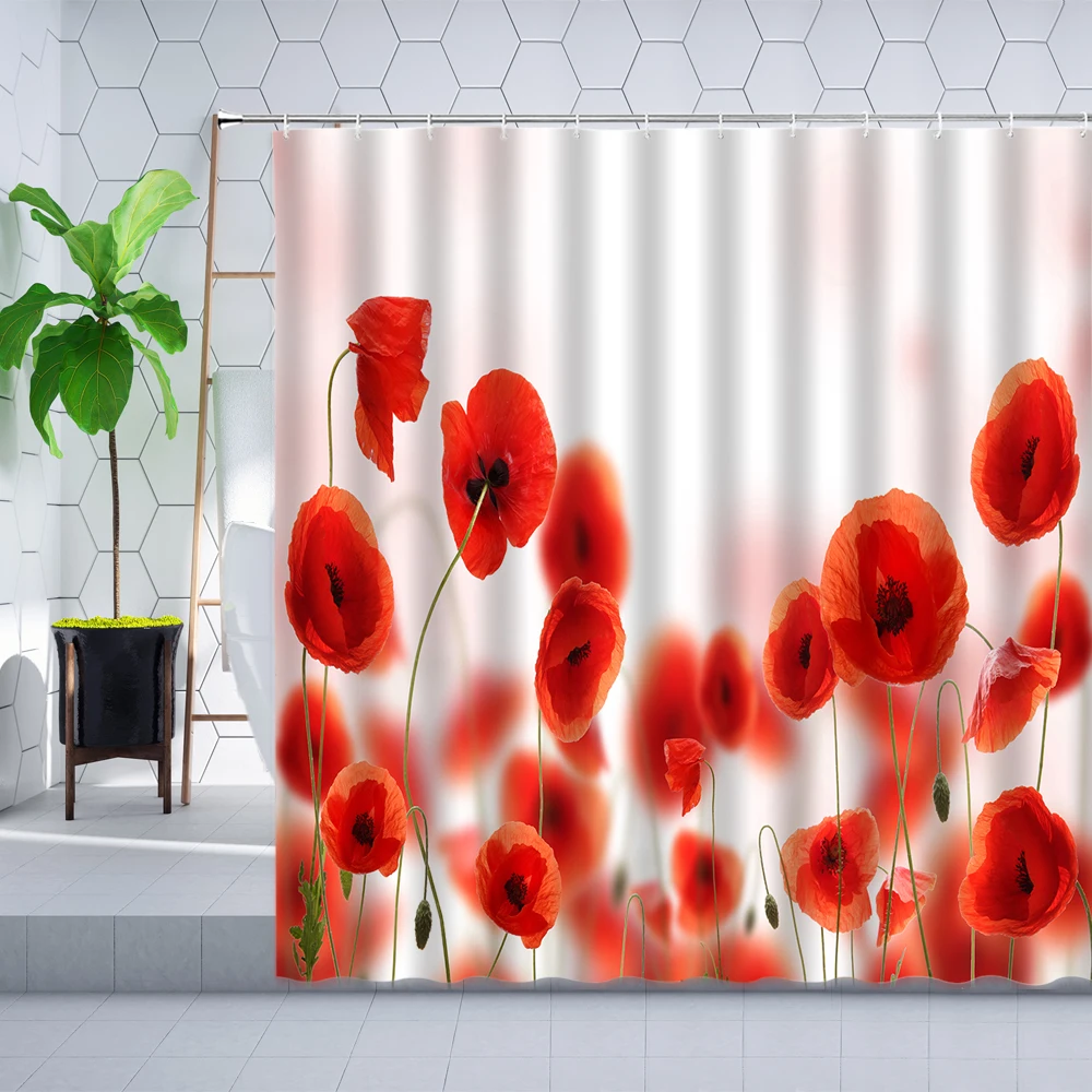 Набор занавесок для душа с рисунком мака, красных цветов, растений,...