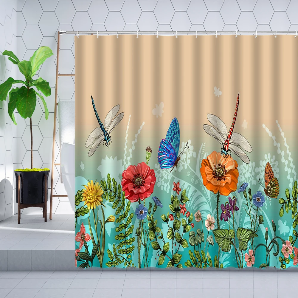 Весенняя садовая занавеска для душа с зелеными растениями, цветы, г...
