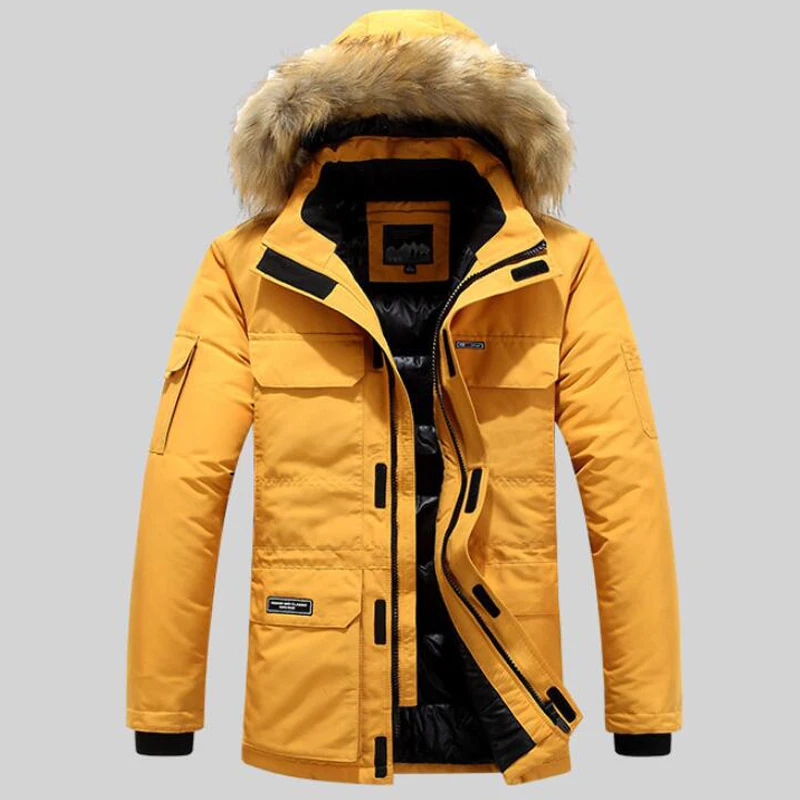 ВесWinter Jackets Men Fur Warm Thick Cotton Multi-pocket Hooded Parkas Me