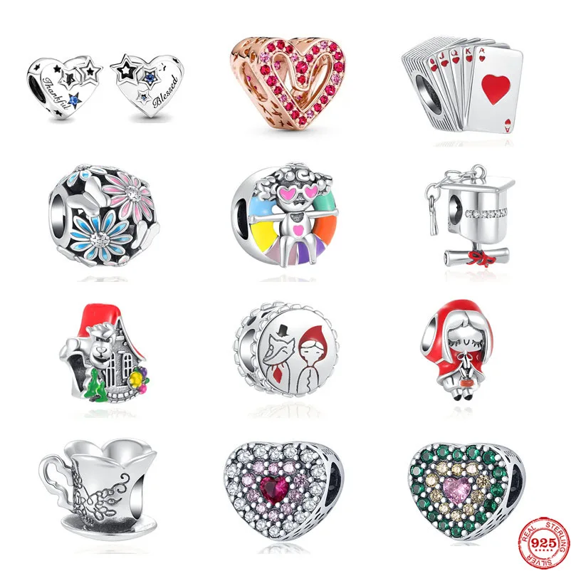 Бусина-шарм Женская из серебра 925 пробы, с сердцем и звездами