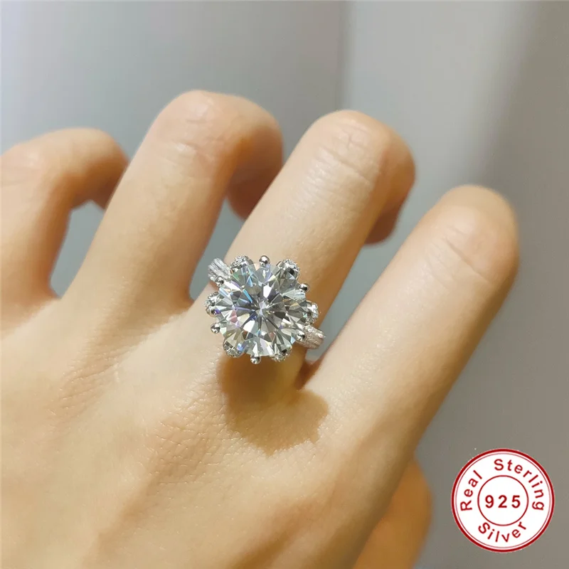 Кольцо Geoki VVS1 с муассанитом женское, роскошное Ювелирное Украшение для вечеринки, с бриллиантом 5 карат, с идеальной огранкой, цвет под серебро