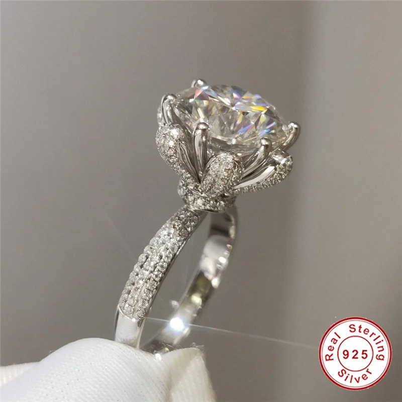 Кольцо женское из серебра 925 пробы, с муассанитом 0,5-2 карата
