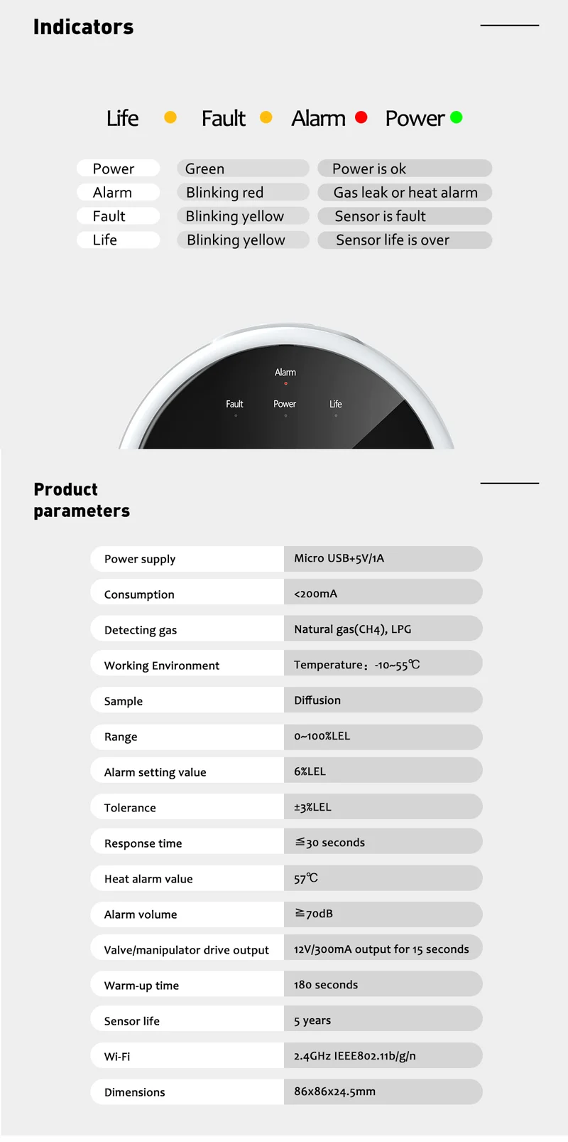 Датчик утечки газа Tuya с Wi-Fi, детектор сигнализации с управлением через приложение, для умного дома, с поддержкой приложения smart life