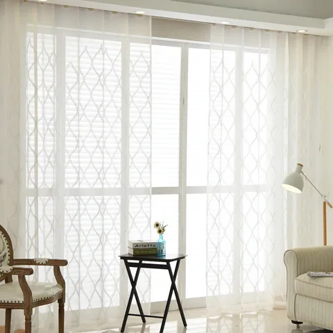 Современные белые геометрические тюлевые занавески для гостиной, сп...