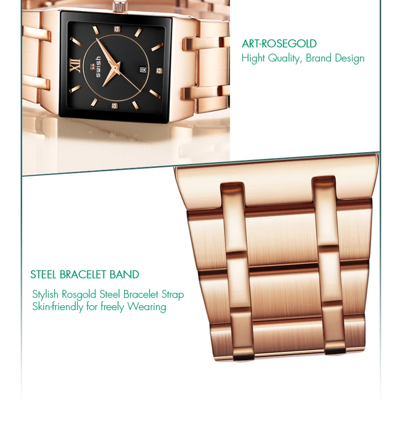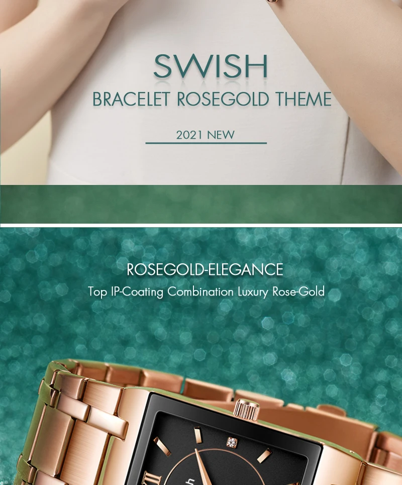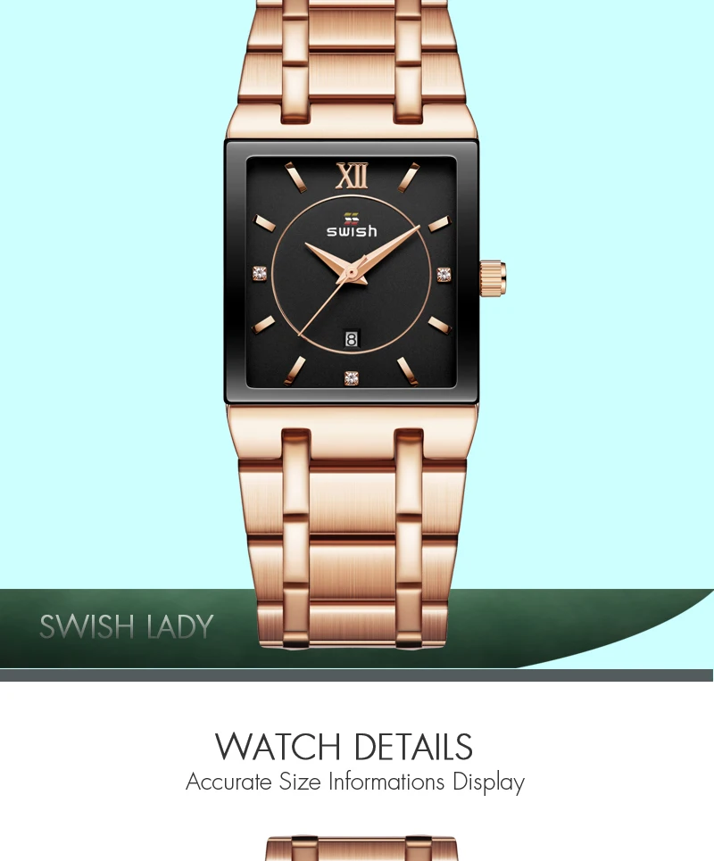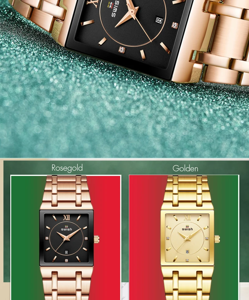 Часы наручные SWISH женские кварцевые, брендовые Роскошные Простые Модные деловые, с квадратным циферблатом, золотистые водонепроницаемые