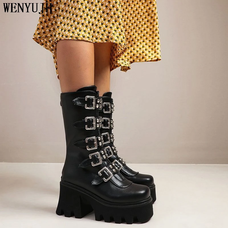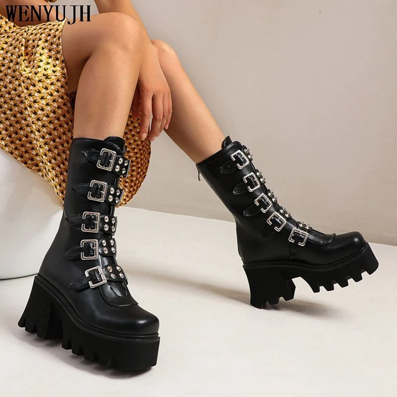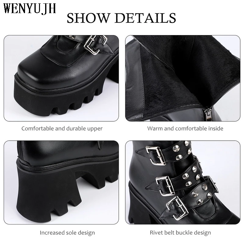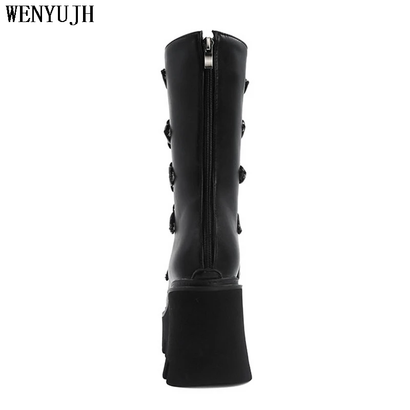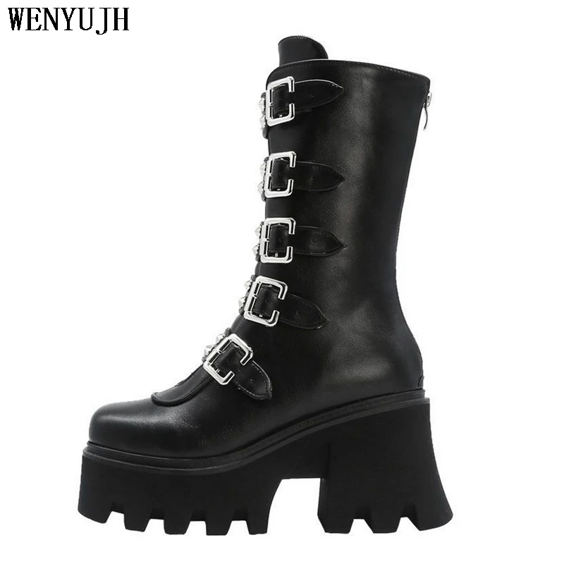 Женские ботинки на платформе в готическом стиле, черные боевые боти...