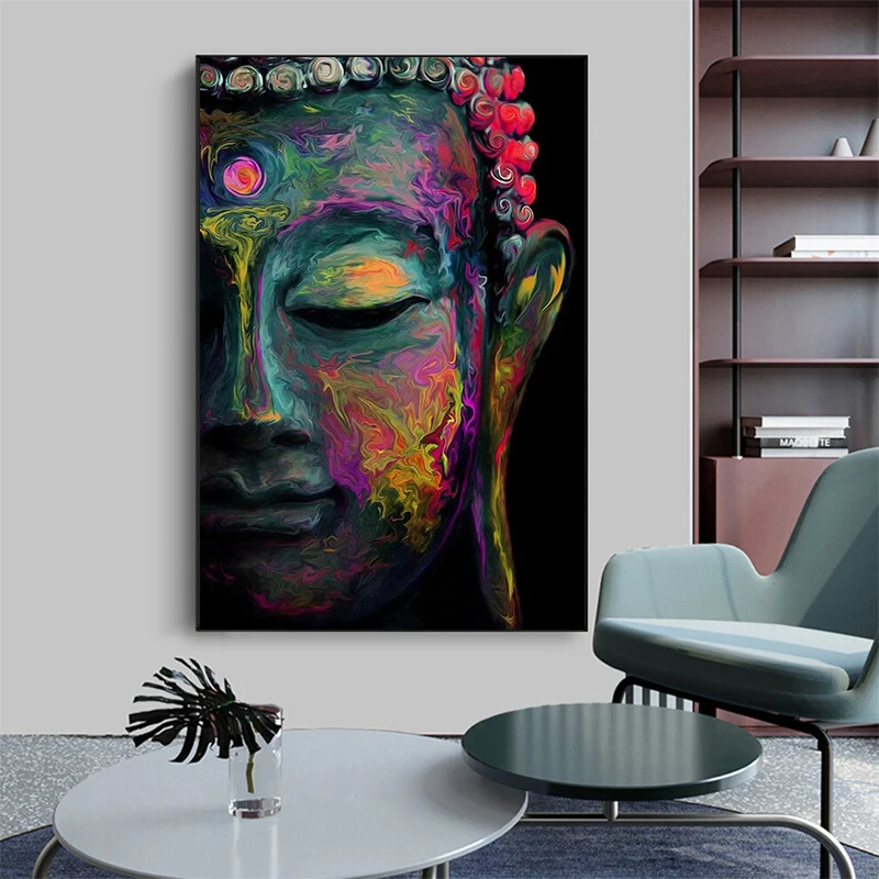 Красочные абстрактные статуи Будды, Картина на холсте, искусственные буддистские картины, украшение для стены дома, гостиной