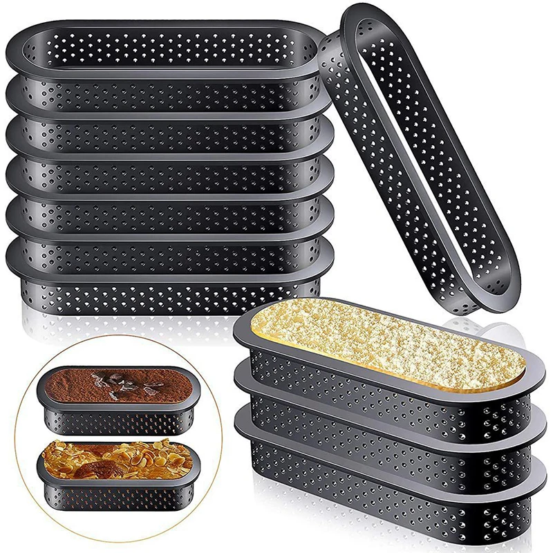 4 шт.компл. 5-дюймовые овальные кольца Tart из углеродного волокна, термостойкие перфорированные кольца для торта, мусса, антипригарная форма для жарки, сыра, пустыни