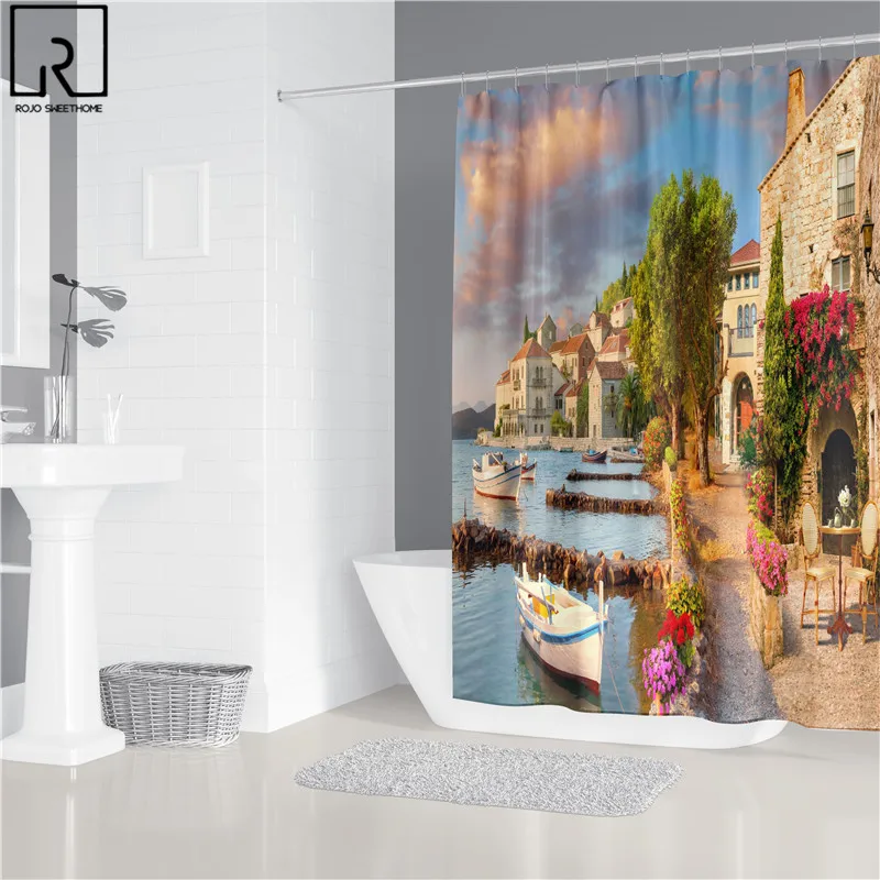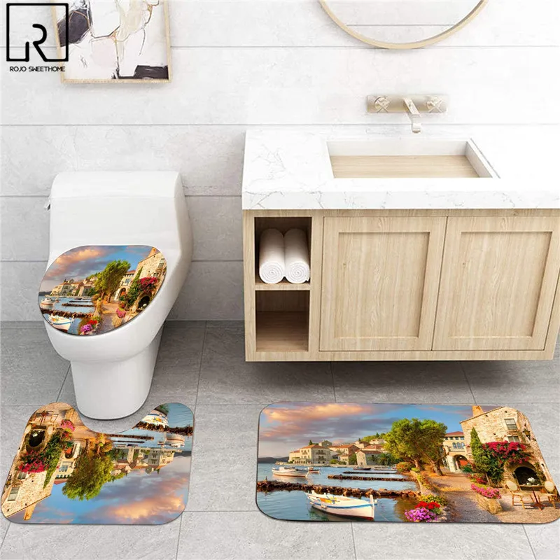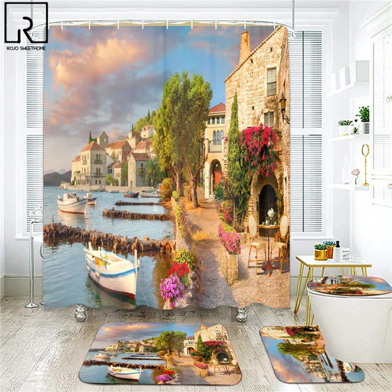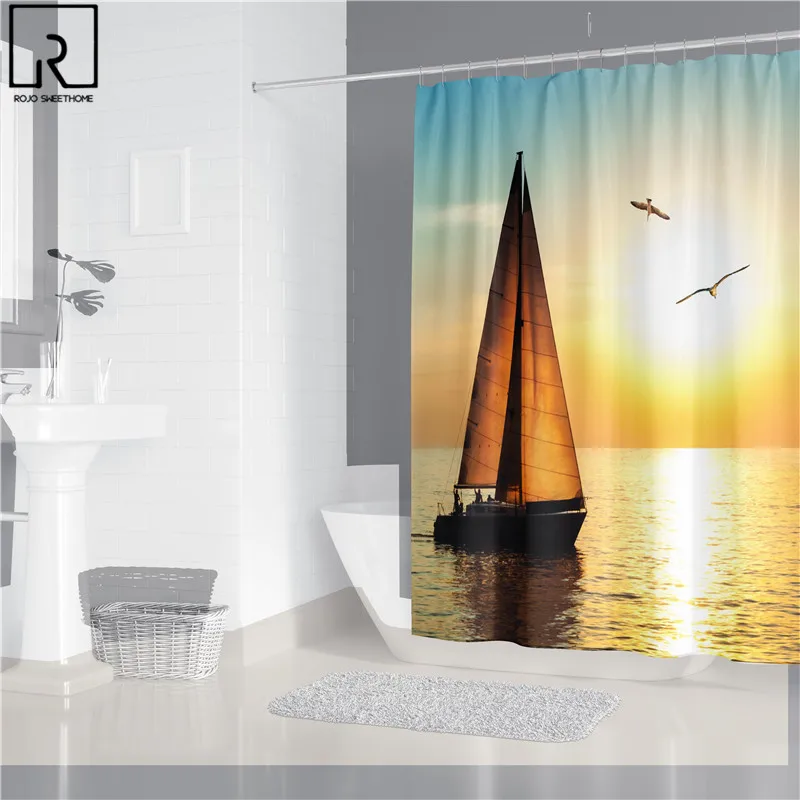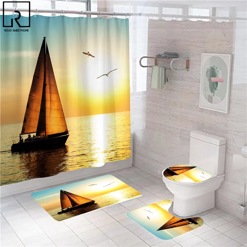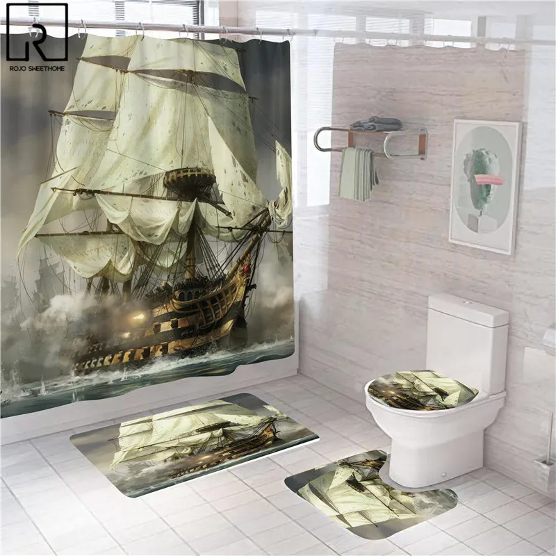 Великолепная занавеска для душа с рисунком корабля или лодки, Полиэстеровая морская декорация, коврик для экрана ванной комнаты, крышка для туалета, домашний декор
