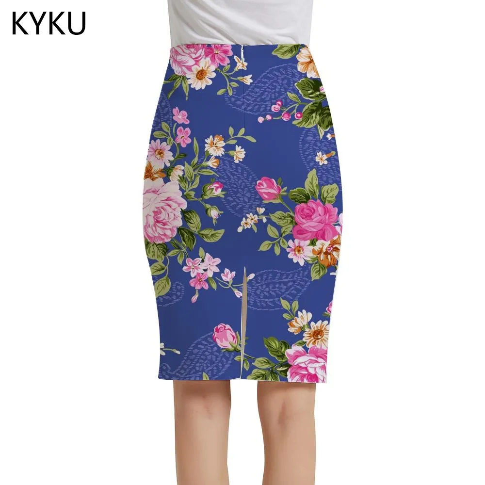 Женская винтажная юбка-карандаш KYKU, офисная юбка с 3D-принтом пионов и цветов в стиле Харадзюку, лето 2019